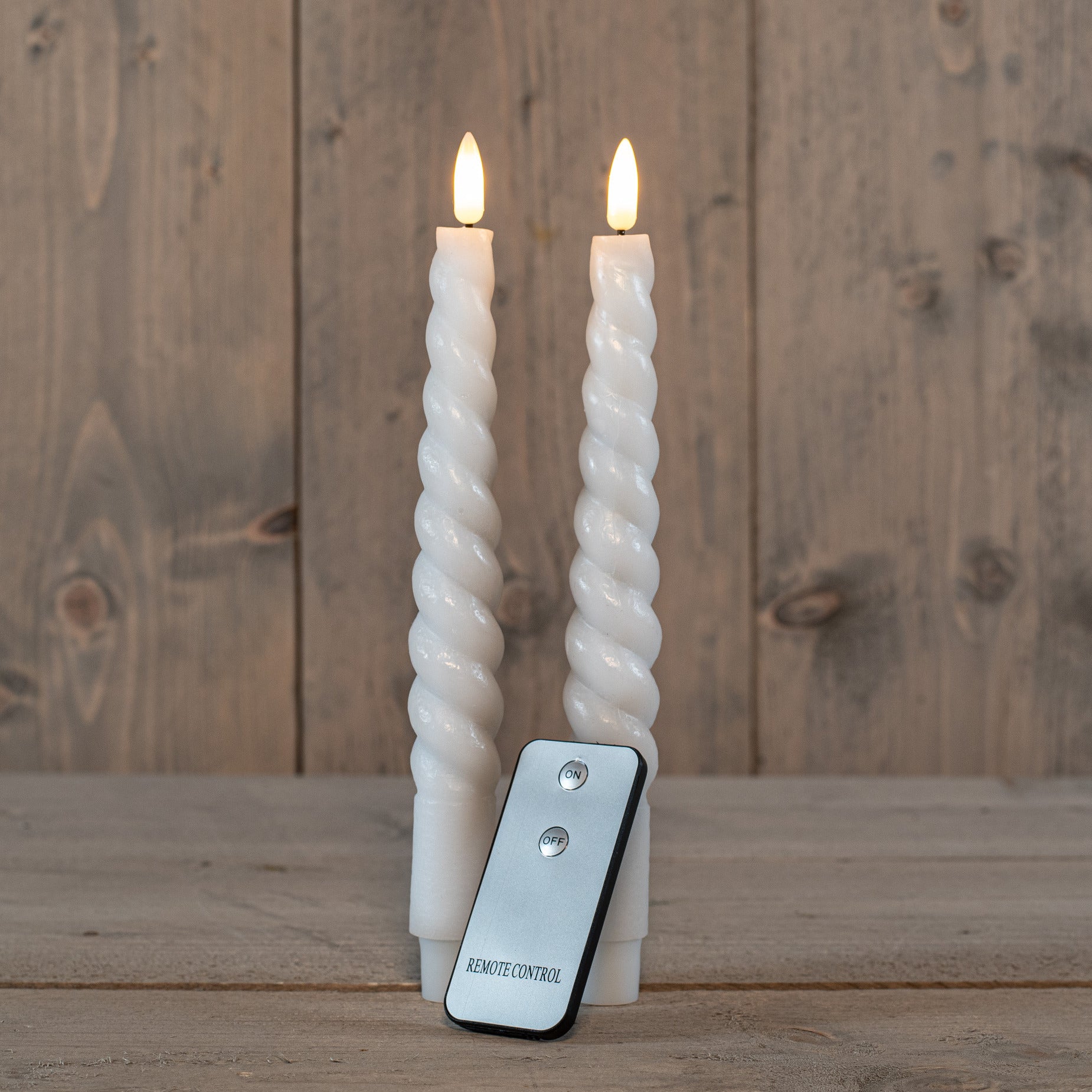 Anna Collection LED swirl dinerkaarsen - 2x st - wit - 23 cm