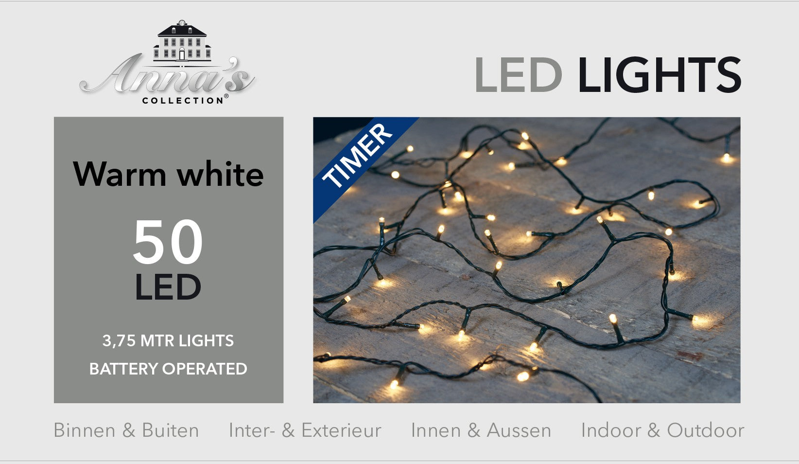 Anna's Collection 3 stuks Lichtsnoer zwart op batterijen 50 lampjes