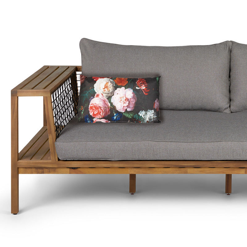 Anna's collection buitenkussen bloem - Zwart|roze - 30 x 50 cm