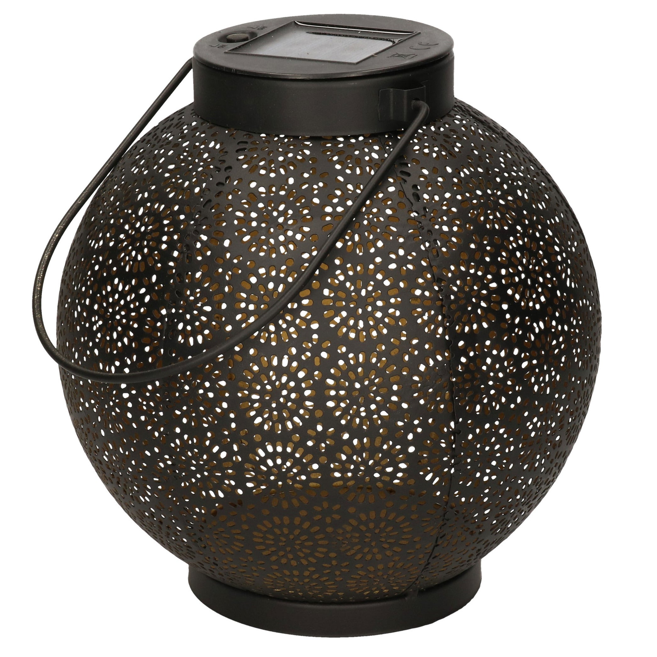 Anna's Collection Lantaarn - zwart - metaal - cirkels - solar - 19 cm