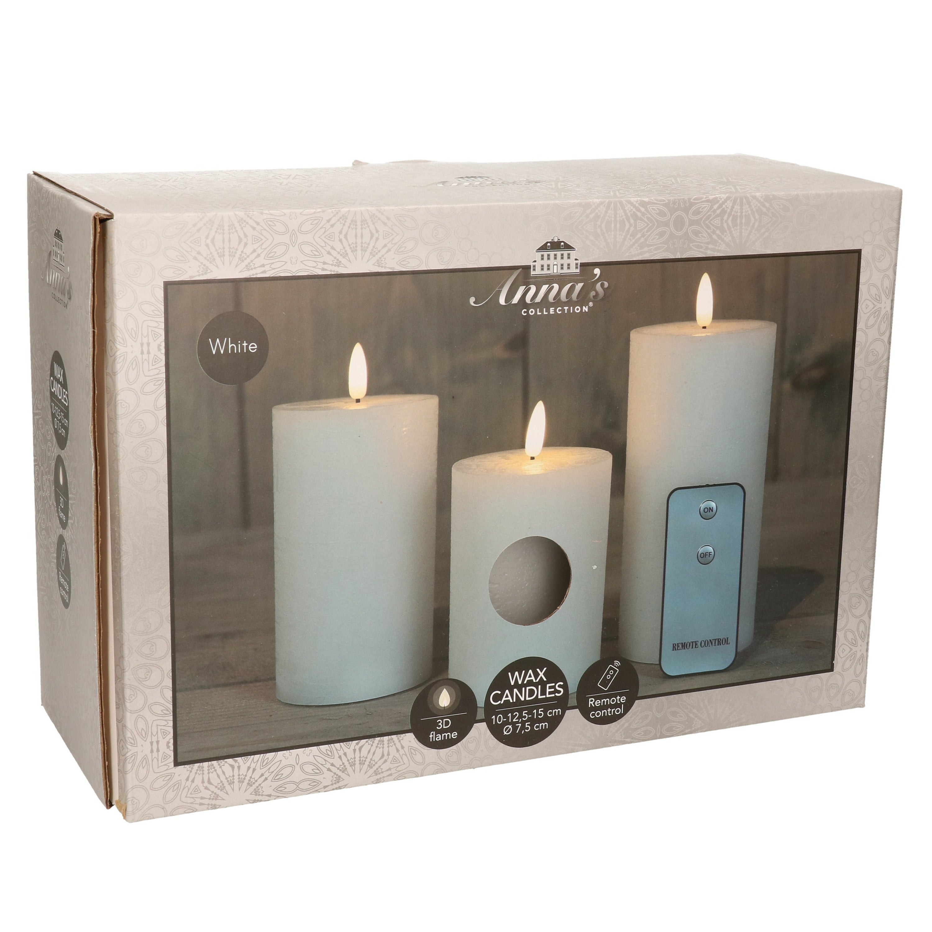 Anna's Collection LED Stompkaarsen met afstandsbediening - 3x - wit