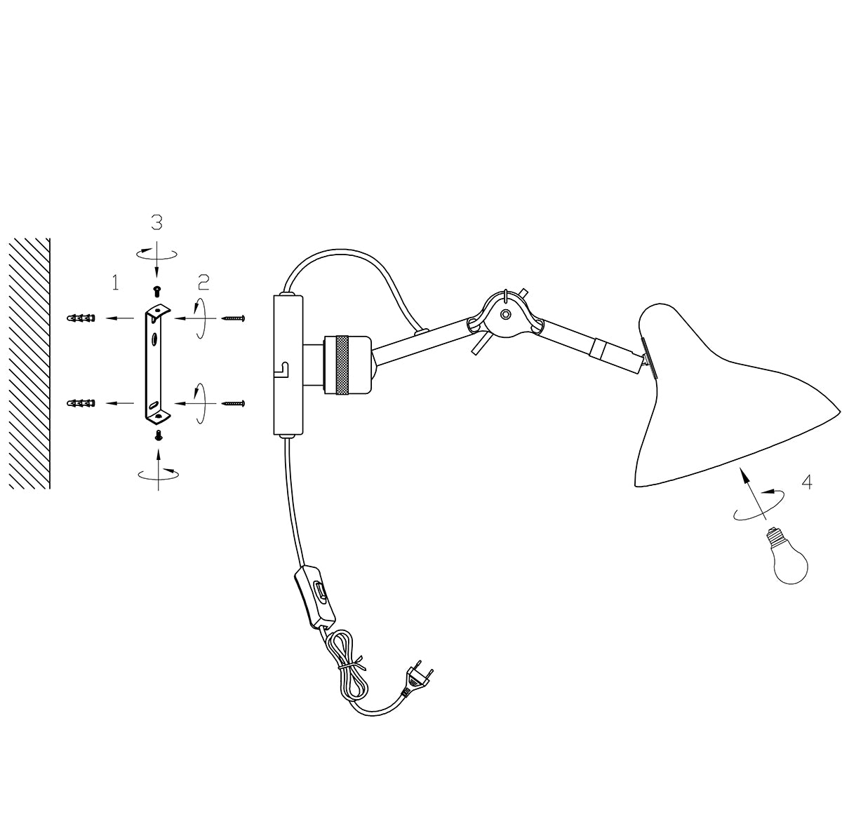 In hoogte verstelbaar. De diepte is 20 cm. E27 (grote fitting). Aansluiten door middel van de stekker. 2 jaar garantie!