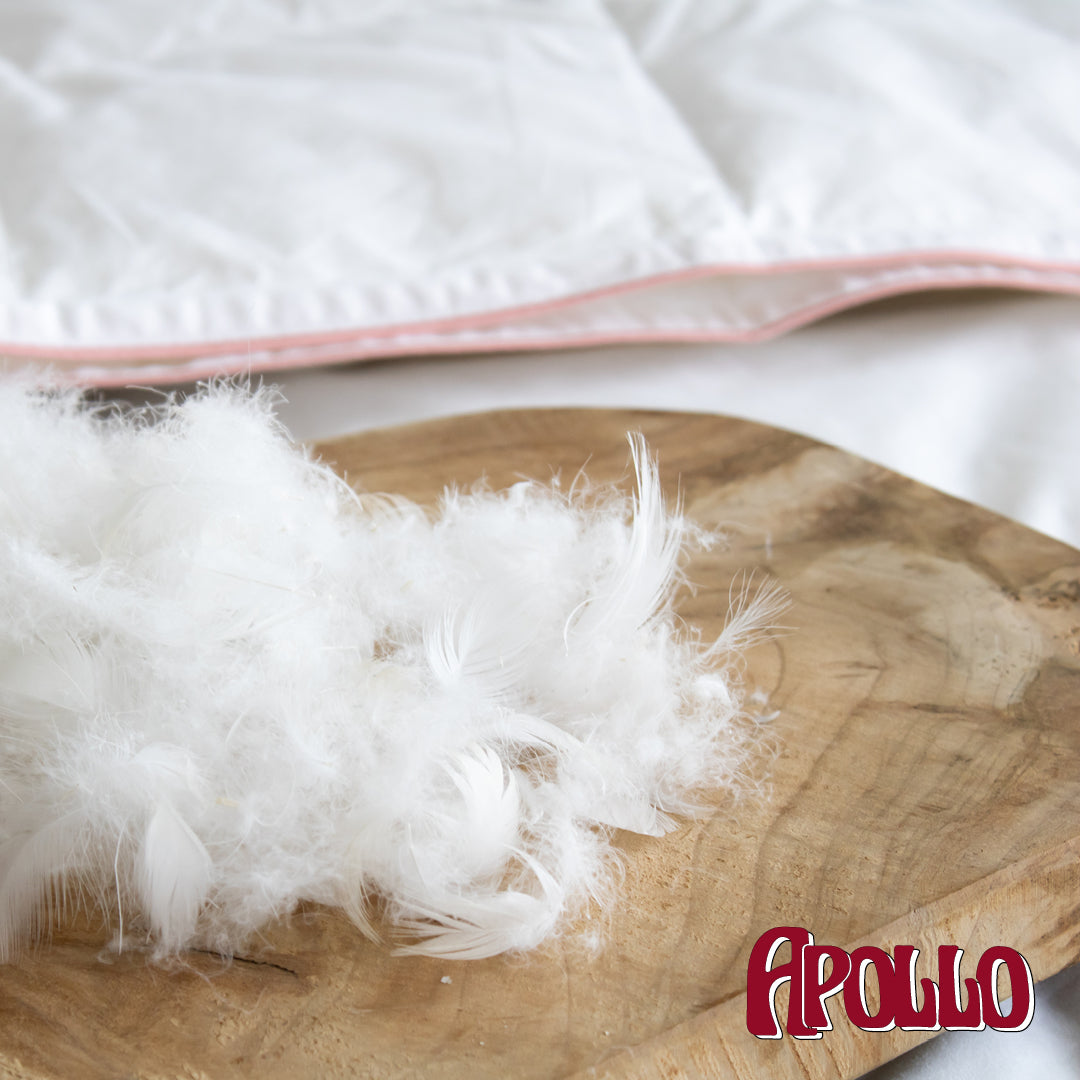Pure verwennerij Fantastisch 4-seizoenen dekbed voor wie kiest voor het fantatische comfort van een origineel voldonzen dekbed is hier het aanbod van het jaar: APOLLO! Apollo is een subliem 4seizoenendekbed, voor aangepaste warmte in elk seizoen. Het hoogwaardige eenden-dons is heerlijk zacht, licht en soepel.