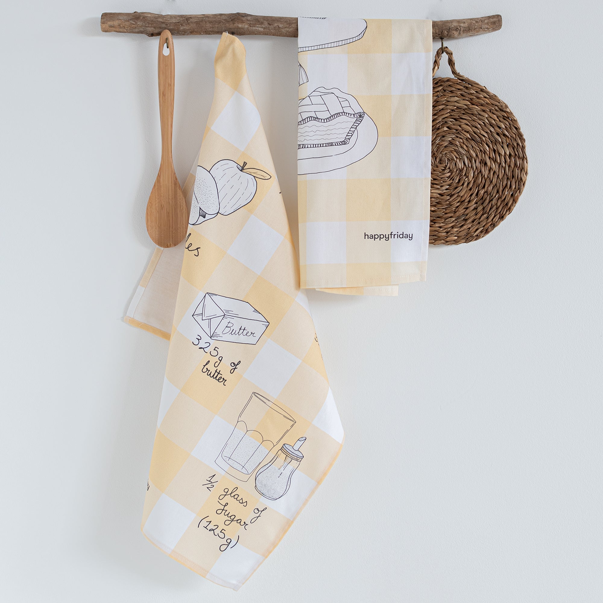 Apple pie Keukenhanddoek 2 stuks 70x50 cm Happyfriday, Veelkleurig, 100% katoen, de kwaliteit van 200 Gr x m2