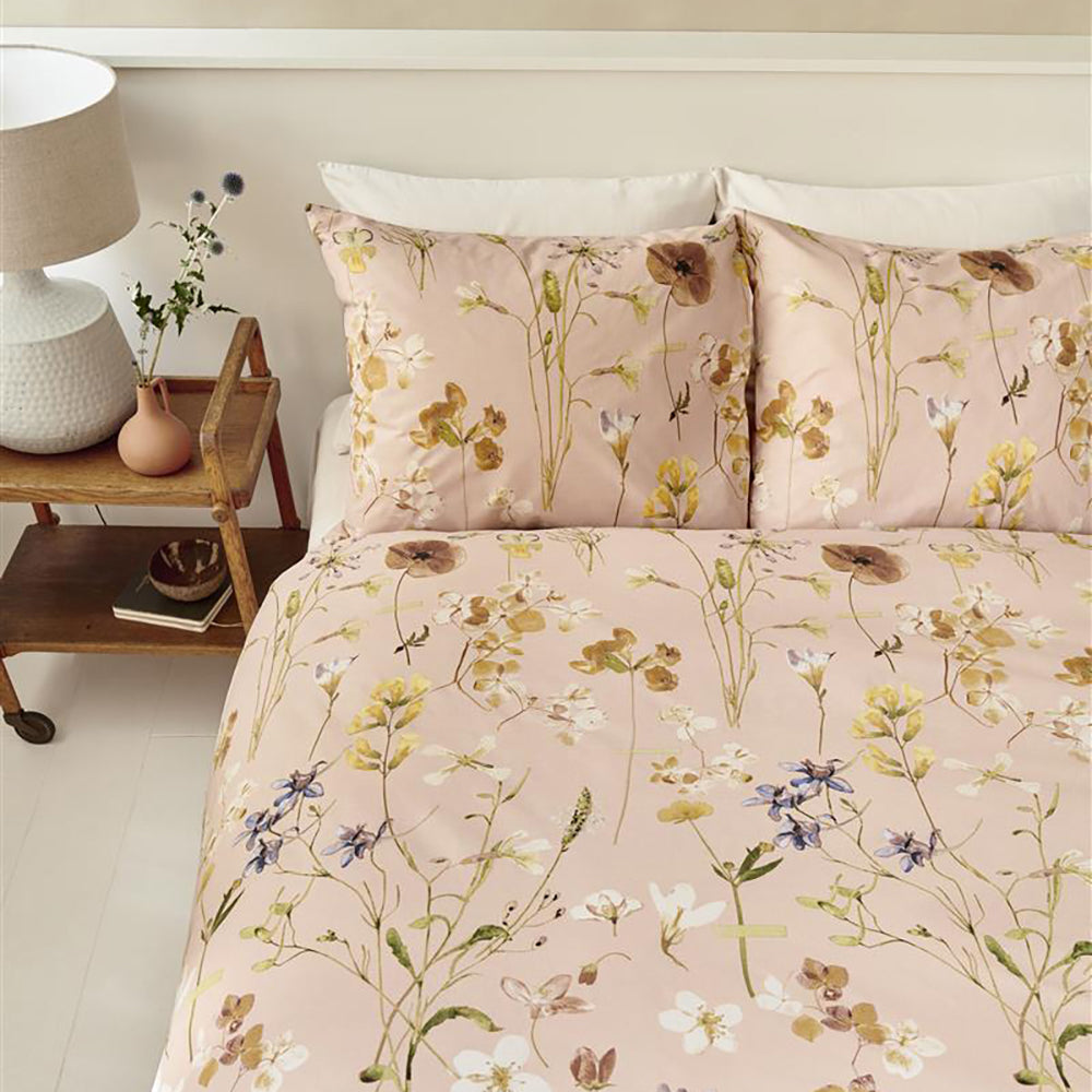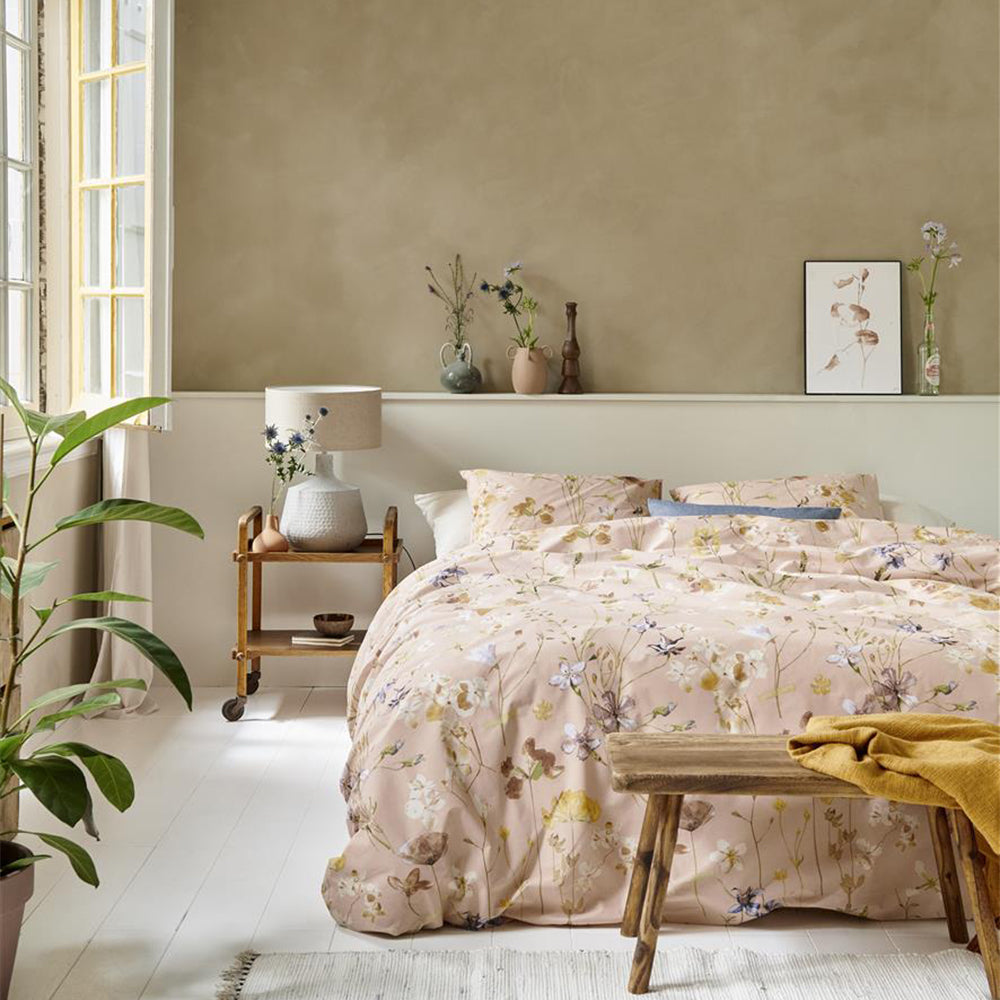 Waarom dekbedovertrek Flowerlove? Vind je het jammer om voor een voorjaarsboeket bloemen uit je tuin te plukken? Dat is niet nodig met het dekbedovertrek Flowerlove uit de bedtextielcollectie van Ariadne at Home. Het overtrek heeft een print van zomerse, handgeschilderde bloemen. De wilde bloemen en droogbloemen zijn losjes verdeeld over het overtrek en komen mooi tot hun recht tegen de nudekleurige ondergrond. Zowel de kussenslopen als het overtrek zijn aan de voor- en achterkant hetzelfde. Het overtrek is verkrijgbaar in meerdere kleuren.