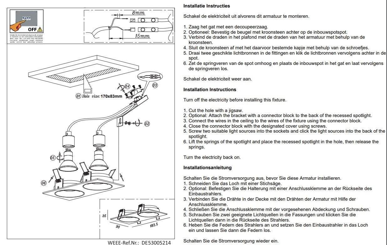 De spot geeft het interieur leven en zorgt dat het licht op de juiste plek komt. De spotjes zijn kantelbaar tot 30 grd. Het gebruik van 2 spots in 1 inbouwgat wordt steeds meer toegepast en geeft de ruimte een trendy uitstraling.