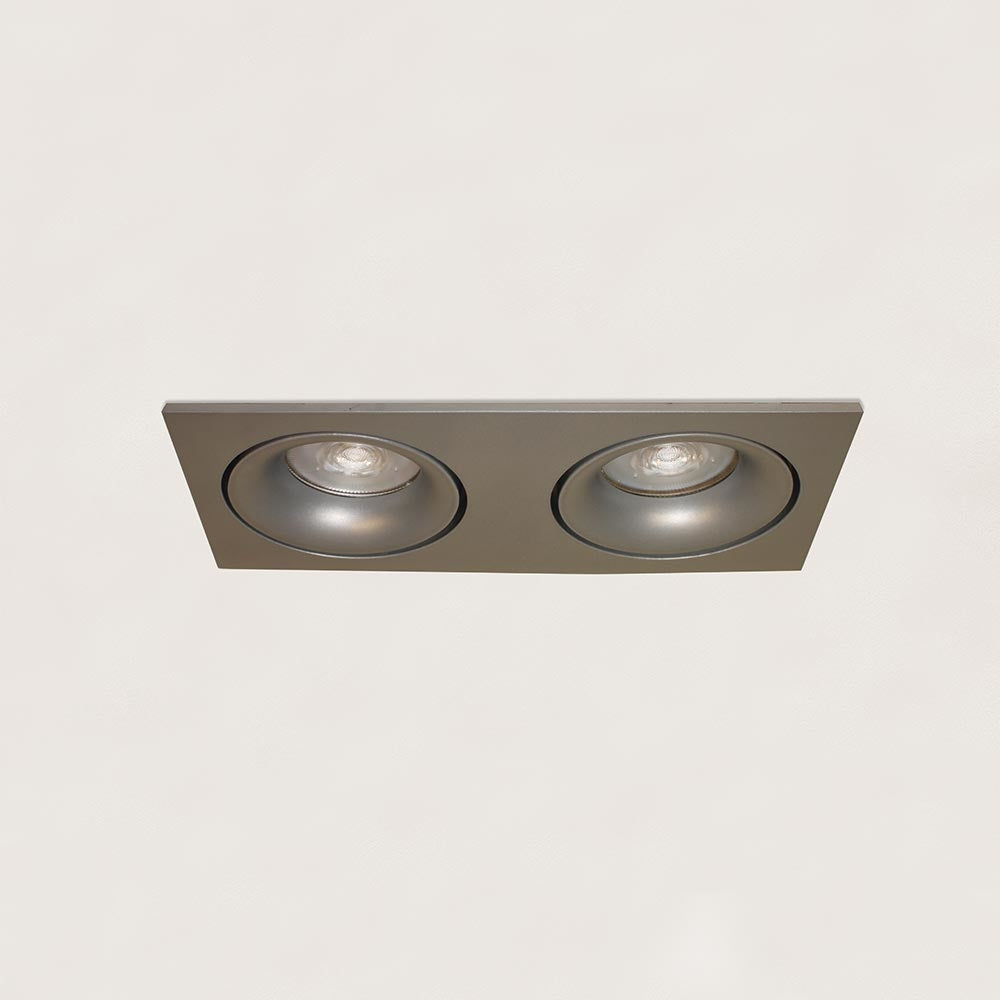 De gu-10 lichtbron valt heel subtiel iets naar binnen in de spot, dit zorgt voor een extra luxe uitstraling van deze tweevoudige inbouwspot.
