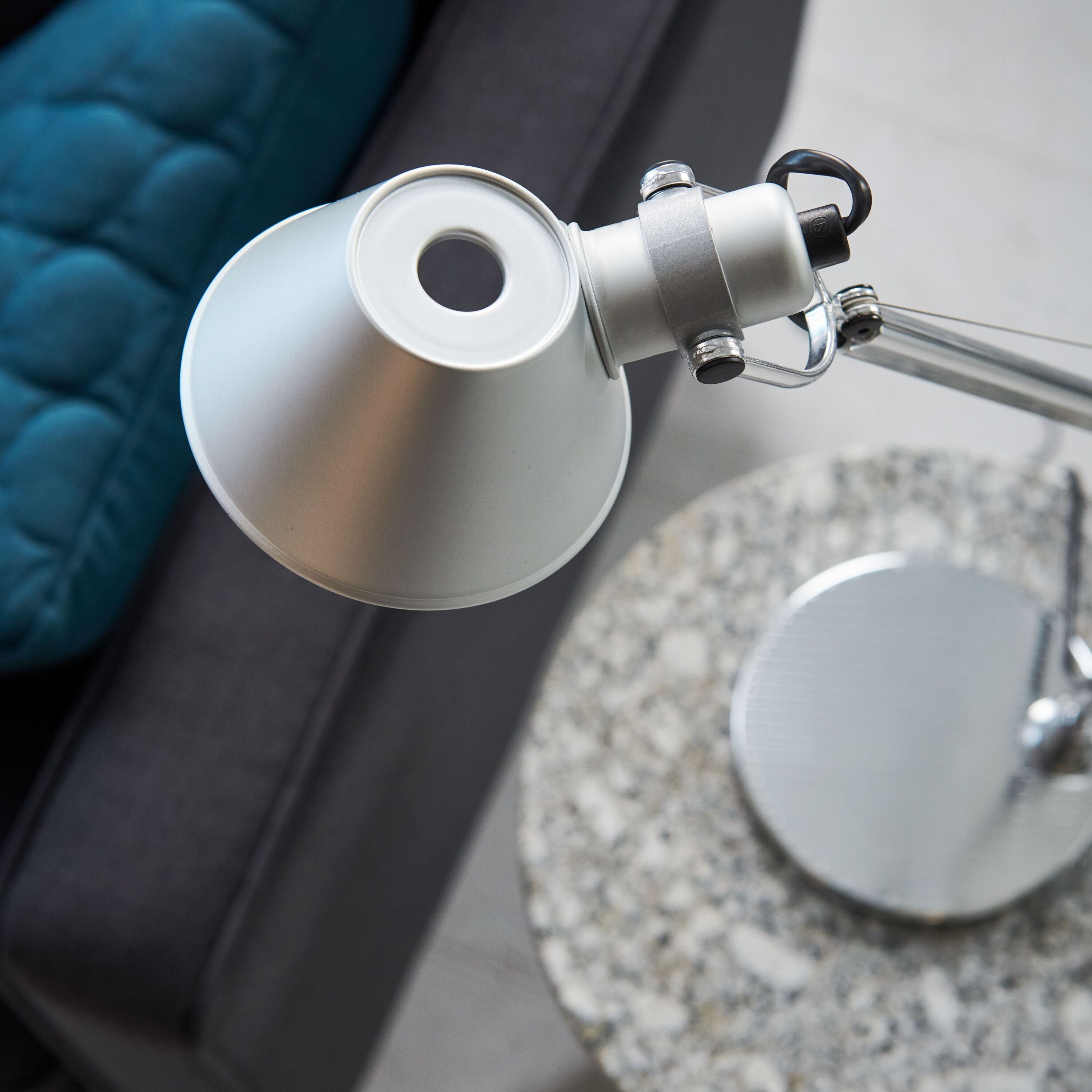 Een strakke en moderne vormgeving De Artemide Tolomeo Micro tafellamp is een prachtige lamp met een strakke en tijdloze vormgeving. Deze designklassieker is ontworpen in 1987 door Michele De Lucchi en Giancarlo Fassina en heeft nog altijd een bijzondere, moderne uitstraling. De lamp is gemaakt van gepolijst aluminium je kunt hem verstellen in verschillende richtingen. Een perfecte leeslamp, maar ook in de woonkamer op een bijzettafel staat hij mooi.
