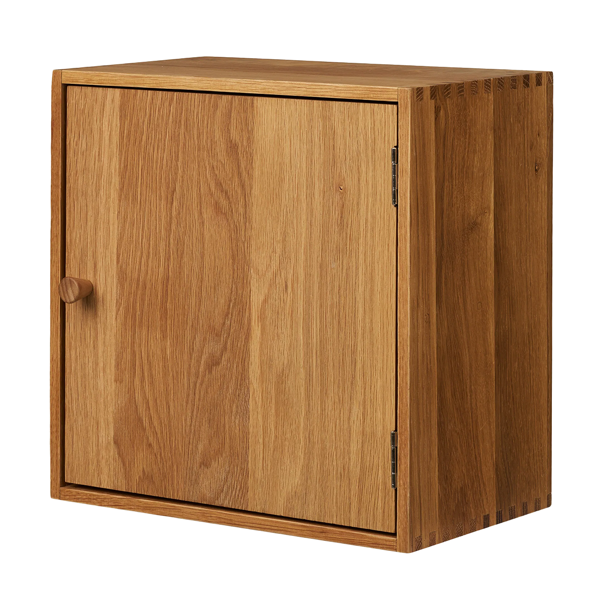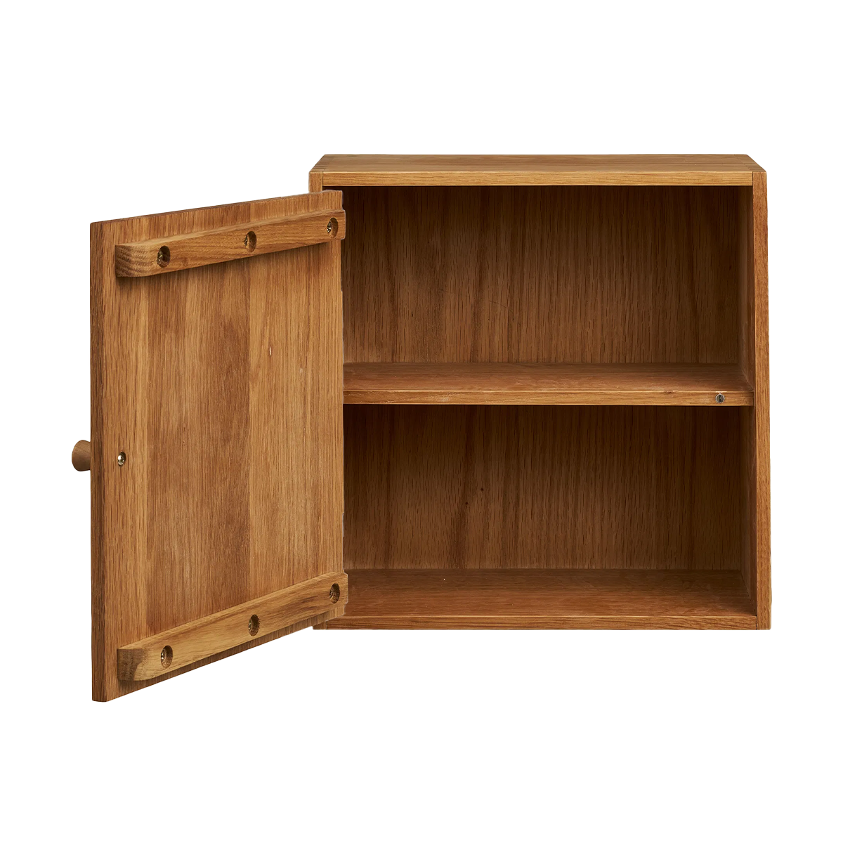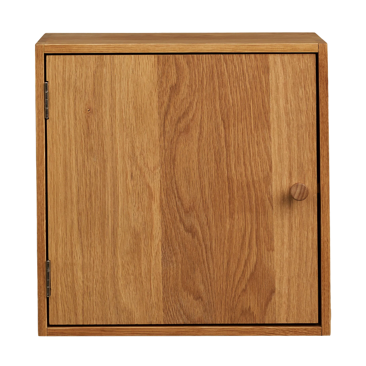 Gemaakt van naturel eikenhout en voorzien van een dichte deur, waardoor je spullen netjes uit het zicht blijven. Met zijn vierkante formaat van 30 x 30 cm past deze kast perfect in kleinere ruimtes, maar komt hij ook mooi tot zijn recht in een groter wandontwerp.