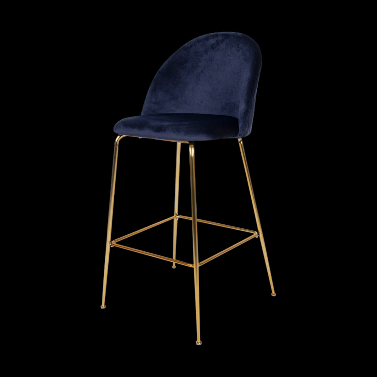 Artichok Aniek barkruk velvet blauw - gouden onderstel - 77 cm