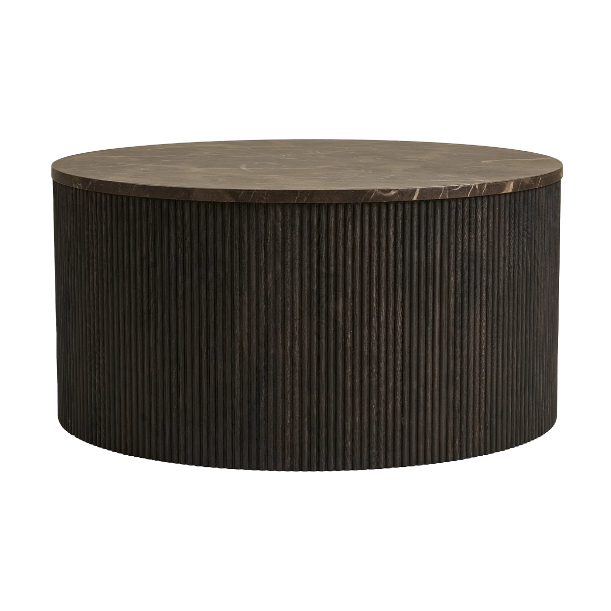 Het ronde tafelblad in donkerbruin marmer geeft een chique en unieke uitstraling, terwijl de cilindervormige voet met verticale houten latjes zorgt voor een moderne twist. Het samenspel van materialen maakt Babette tot een echte eyecatcher in de woonkamer. Door het royale formaat biedt de Babette salontafel genoeg ruimte voor al je dagelijkse essentials: van koffiekopjes en snacks tot een mooi bloemstuk of stapel boeken. Zo is hij niet alleen elegant, maar ook bijzonder praktisch en tijdloos.