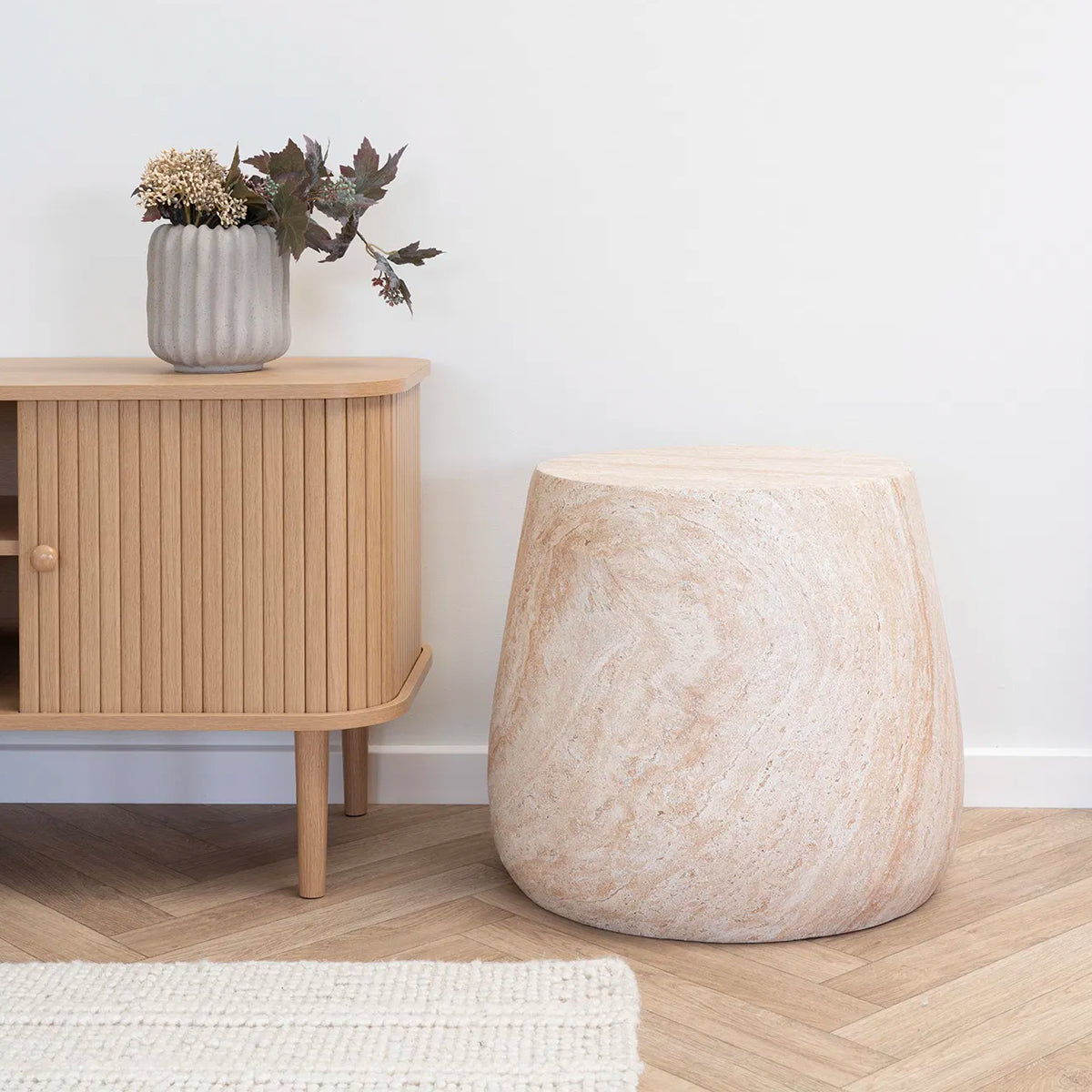 De Dorus ronde fiberclay bijzettafel van het merk Artichok is een stijlvolle toevoeging aan je interieur.