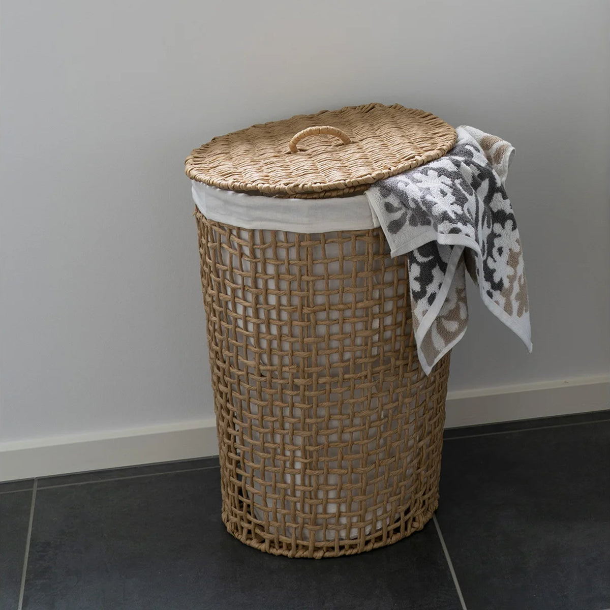Deze sfeervolle wasmand met een natuurlijke uitstraling maakt jouw wasroutine een stuk leuker. Het naturelle design past perfect in elke ruimte en voegt een vleugje gezelligheid toe aan je interieur. De binnenvoering is gemaakt van katoen. Dankzij het deksel blijven vieze sokken en shirts uit het zicht en houd je alle was netjes opgeborgen.