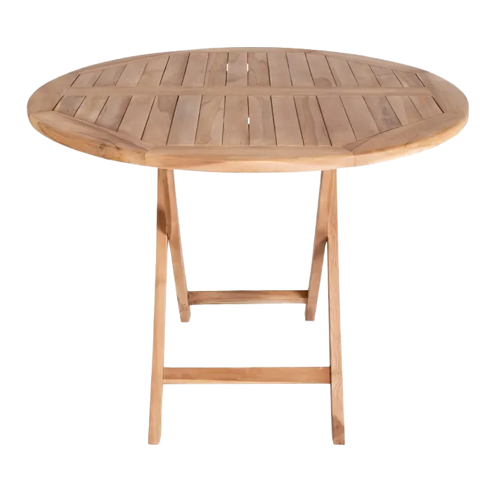 De mooie tafel is gemaakt van teakhout en klap je na het diner gemakkelijk weer in. Opgeruimd staat netjes en je hebt direct weer ruimte op je terras.