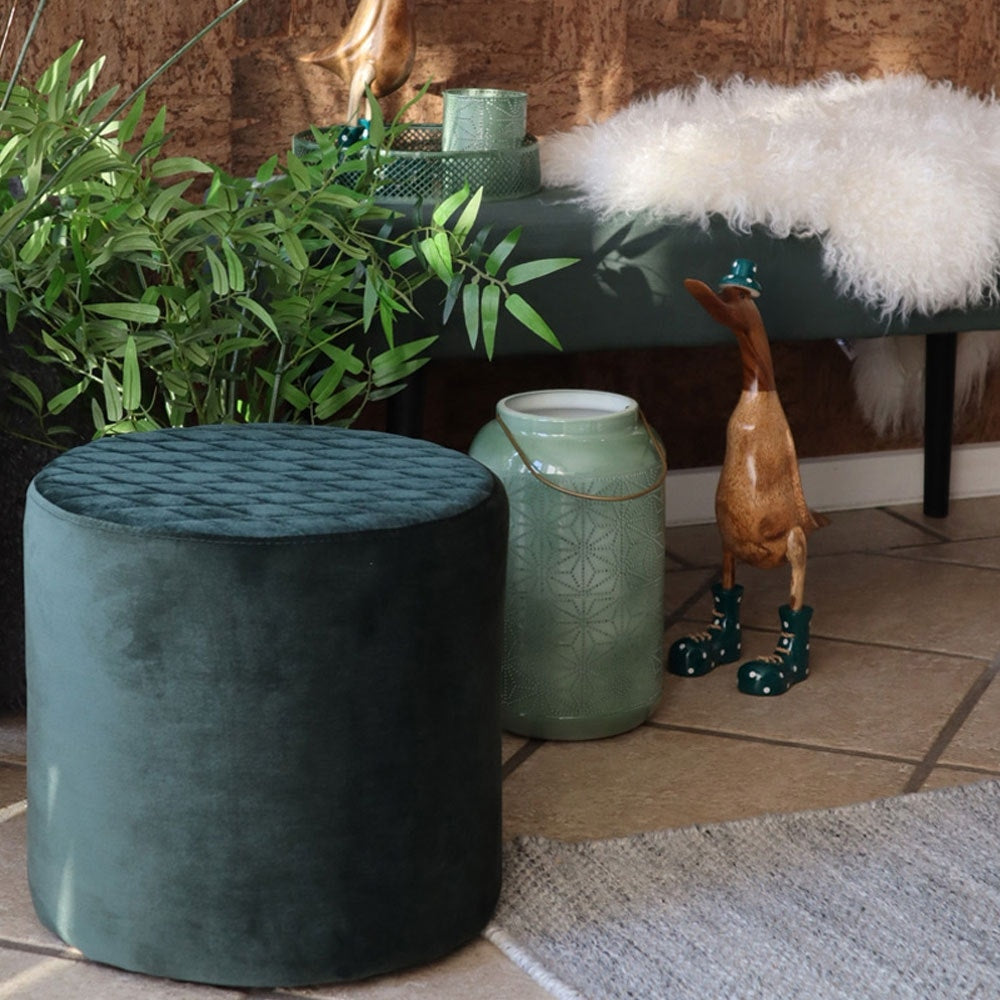 Artichok Jip velvet poef donkergroen - Ø 34 cm