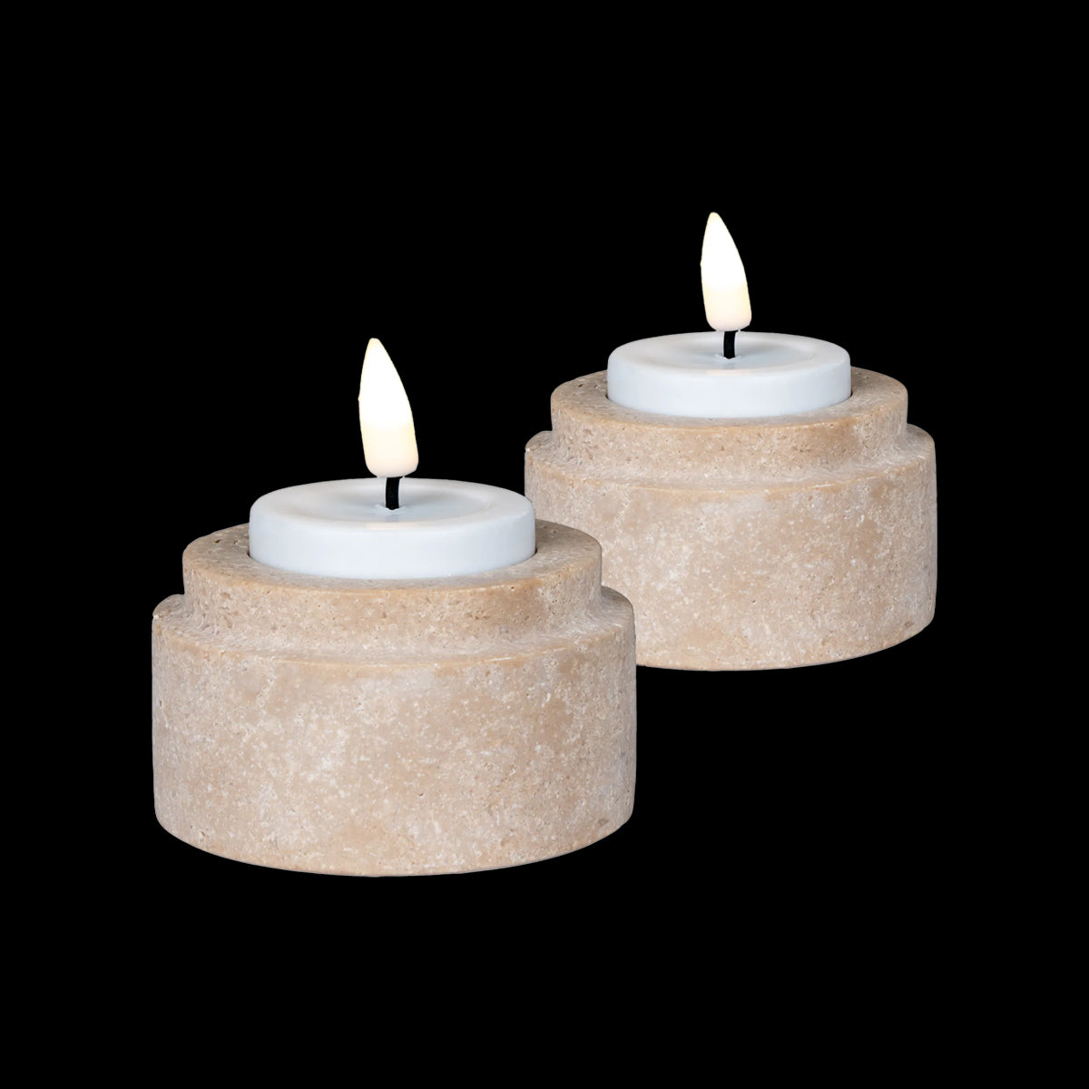 Artichok Joah Travertijn Kaarsenhouder Set van 2 - Beige
