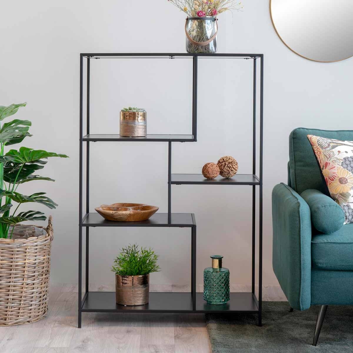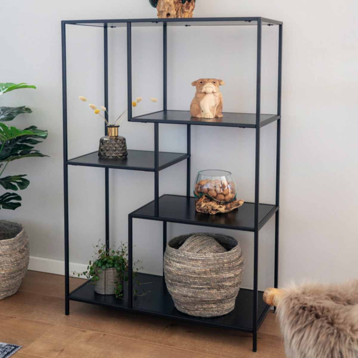 De veelzijdige kast heeft verschillende vakken die asymmetrische zijn ingedeeld, waardoor er een speelse twist ontstaat die meteen opvalt. De industriële boekenkast is een praktisch ontwerp om al jouw mooie spulletjes te tonen. De kast is gemaakt van stevig metaal en krijgt daardoor een industriële aanblik. Eigenlijk kan jouw interieur in deze tijd niet meer zonder een mooie kast als deze Karen boekenkast.