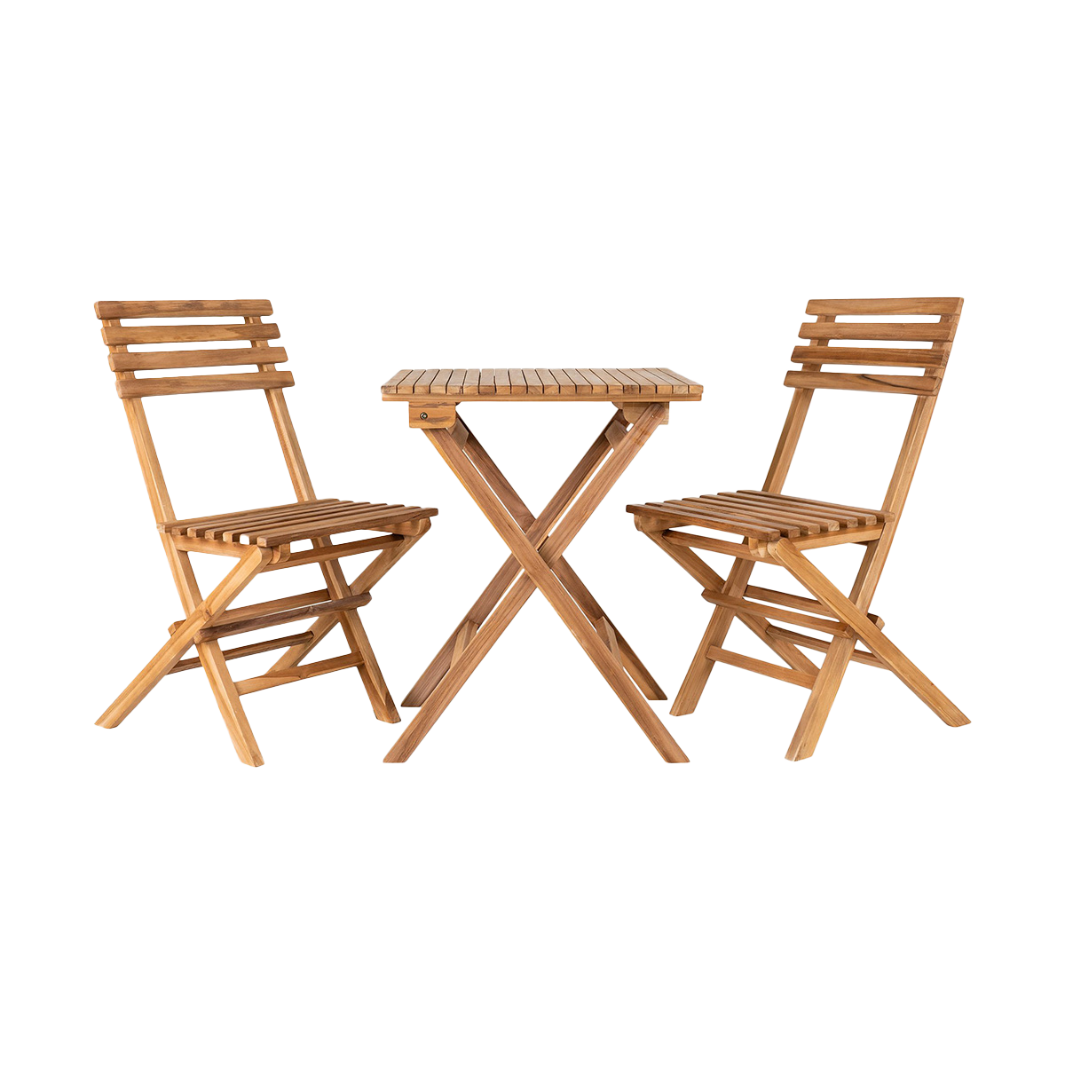Met de Lenneke houten bistroset van Artichok heb je alles wat je nodig hebt voor een gezellige zitplek in de tuin.