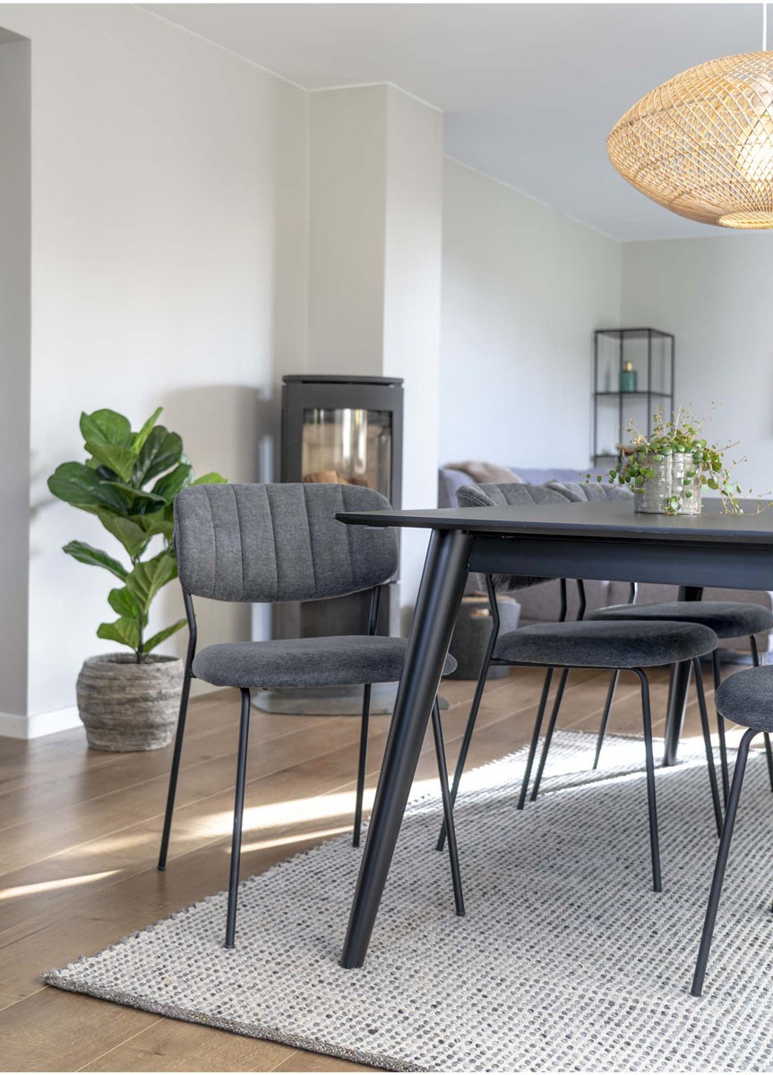 Het strakke metalen onderstel in combinatie met de gestoffeerde zitting, maakt deze stoel een moderne stoel. Hij ziet er niet alleen modern en strak uit, maar heeft ook een zachte en warme uitstraling. Dat maakt jou interieur in één klap gezellig. De Levi eetkamerstoel is er ook in een barkruk uitvoering.