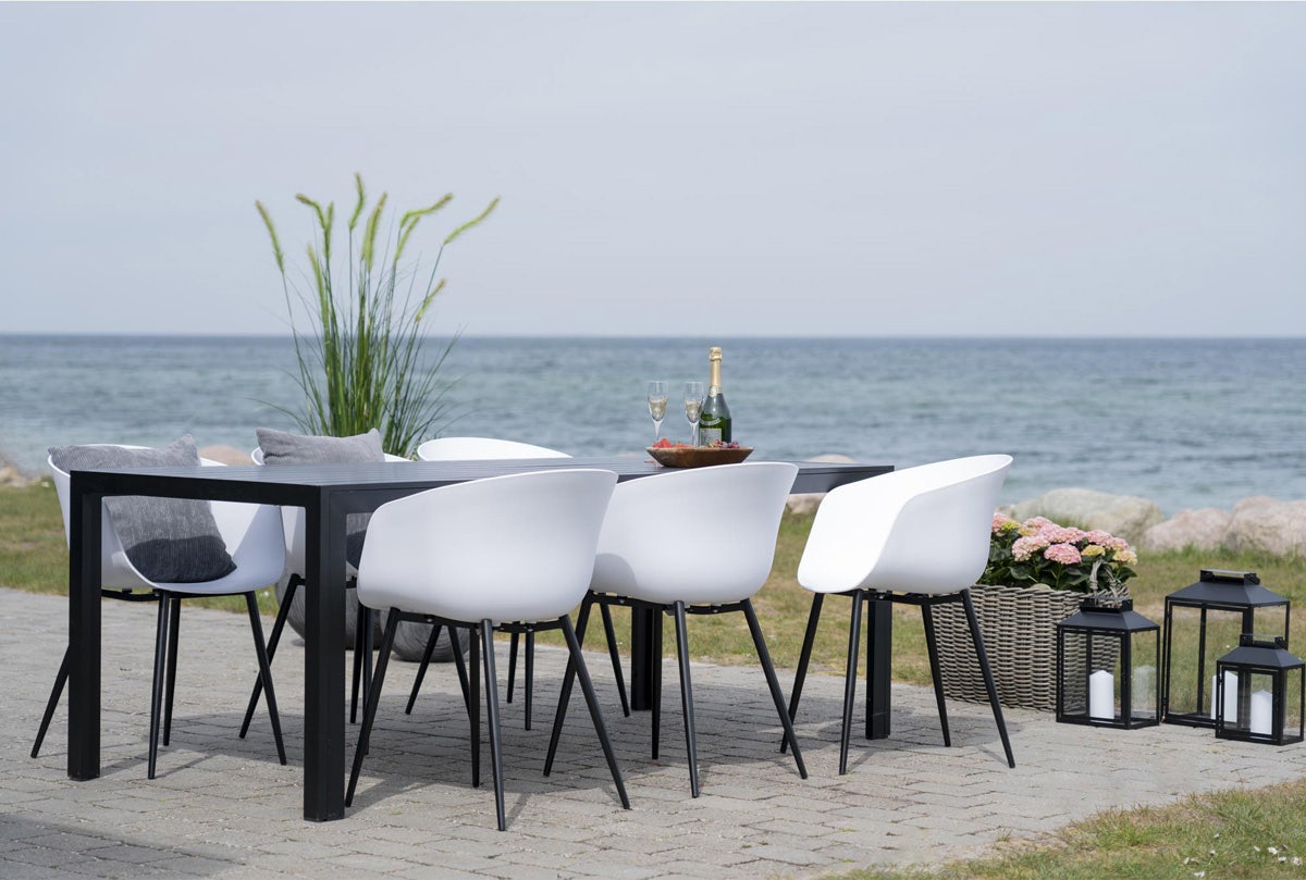 Artichok Liloe kunststof tuinstoel wit met armleuningen