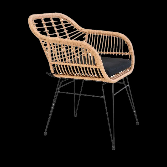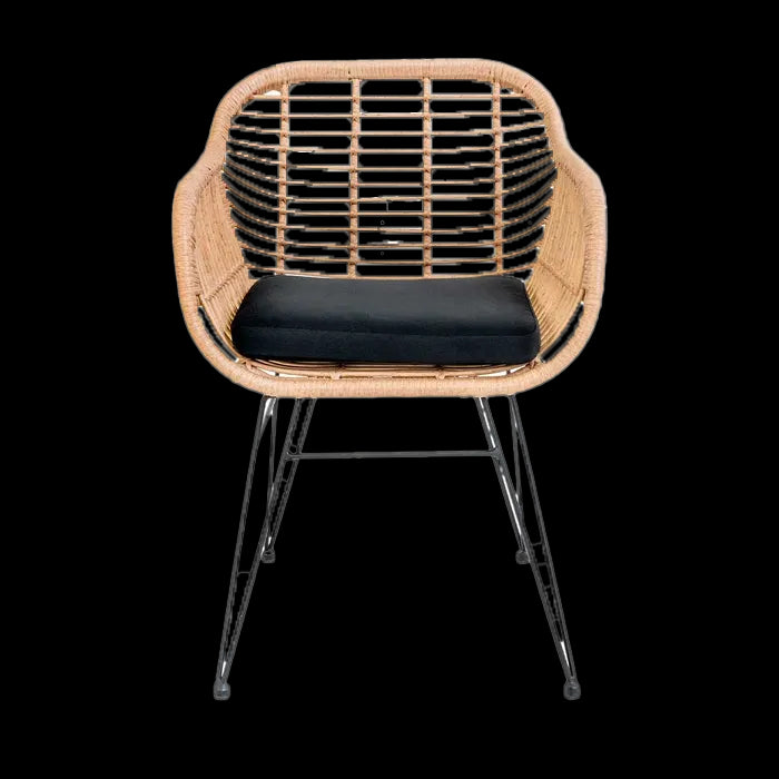 Plaats hem met een aantal stoelen naast elkaar aan een grote eettafel in de tuin om lekker met familie te kunnen genieten van een zomerse barbecue. De Madelein tuinstoel is gemaakt van verweven kunststof, wat de stoel een rotan look geeft. De stoel is voorzien van een comfortabel zitkussen. Het onderstel is gemaakt van metaal en heeft dopjes onder de poten. Ga jij voor een Ibiza stijl in de tuin? Ontspan en zak weg op deze comfortabele Bohemian stoel.