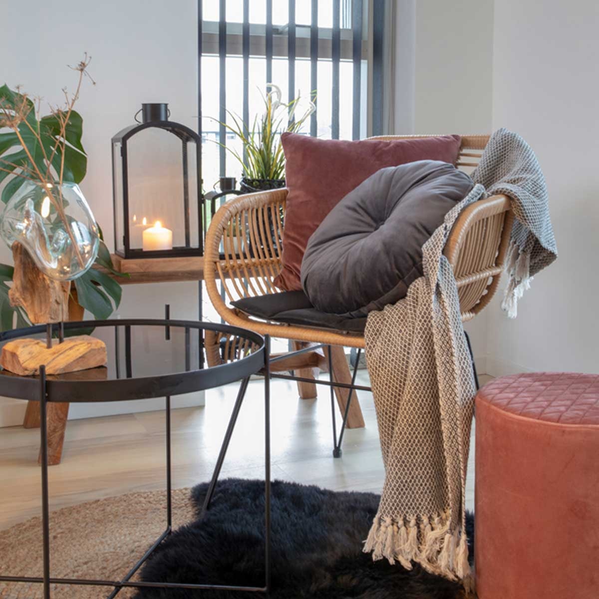 - Door de zwarte kleur, leuk te combineren met kleurrijke kussens