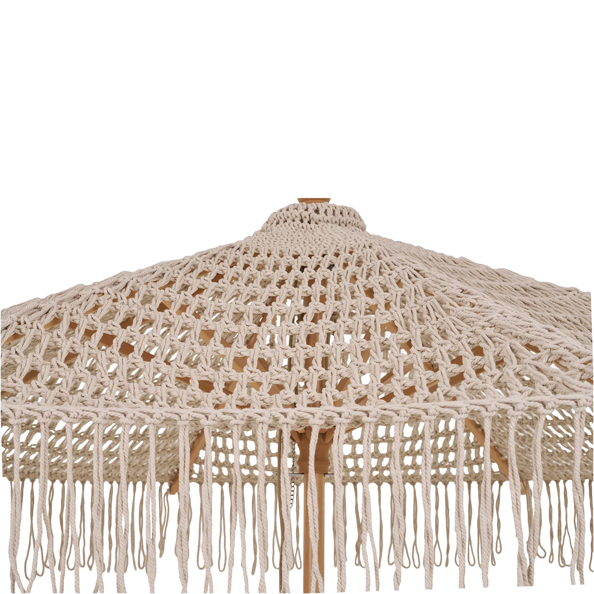 Deze parasol in beige heeft een unieke, gevlochten katoenen kap met speelse franjes, waardoor hij een luxe en bohemian uitstraling krijgt. Perfect voor een zomerse sfeer in je tuin, op het terras of op het strand. Met een diameter van 250 cm en een hoogte van 255 cm biedt deze parasol een lichte schaduwplek. Doordat het katoenen doek geknoopt is, laat het zonlicht er deels doorheen, wat een prachtig speels lichteffect creëert. Ideaal voor wie van een beetje zon houdt, maar toch beschut wil zitten. Zet ‘m naast je loungeset, bij je eettafel of neem ‘m mee naar het strand voor een stijlvolle schaduwplek.
