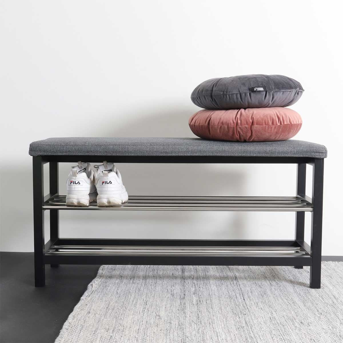 Het Norah schoenenrek met bankje is ideaal voor in de gang.