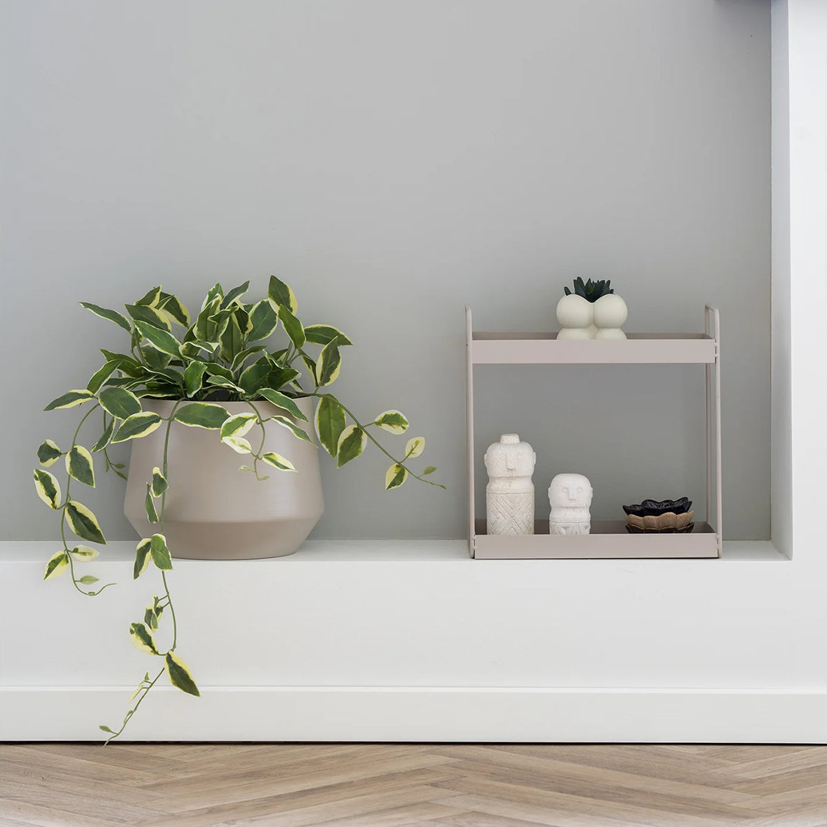 Met zijn slanke ontwerp en handige formaat is dit leuke tafeltje perfect voor naast de bank, in de hal of zelfs in de slaapkamer. Gebruik hem als bijzettafel om je drankje, boek of decoratieve items op te plaatsen, of transformeer hem in een stijlvolle plantenstandaard voor een groene touch in je interieur. Het matte beige oppervlak van dit tafeltje straalt rust uit en biedt een neutrale basis voor verschillende stylingopties. Of je nu kiest voor een minimalistische look of een groene oase, de Pepijn bijzettafel past zich moeiteloos aan.