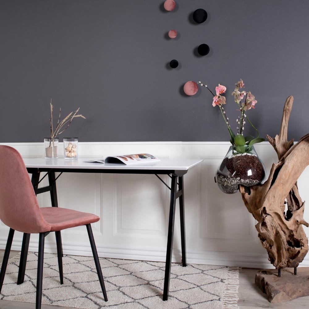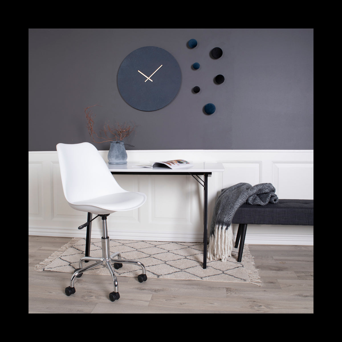 Het bureau oogt door de combinatie van het witte tafelblad en het zwarte frame fris en licht. Het bureau biedt je dé ideale plek om thuis te werken of te studeren. Combineer hem met een comfortabele bureaustoel en je zit gegarandeerd lekker aan je nieuwe aanwinst. Met zijn compacte formaat past dit bureau in vele verschillende ruimtes in huis. Stijl hem af met wat accessoires of een plant om je werkplek compleet te maken.