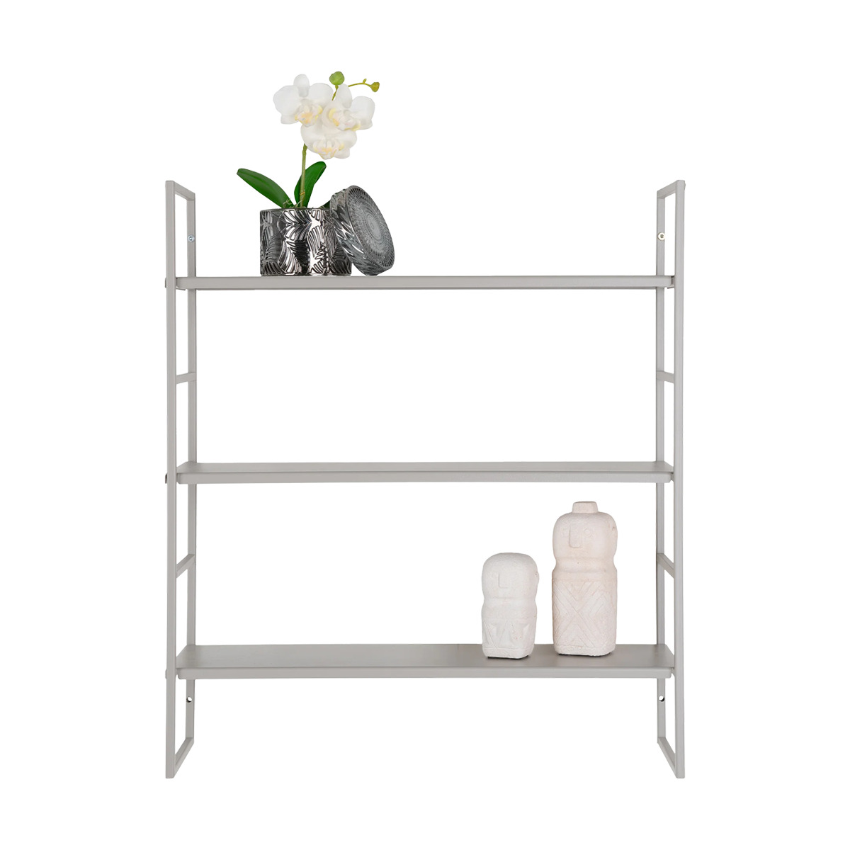 Sebas is een wandrek met drie planken om jouw mooiste accessoires te presenteren. Kleed de planken bijvoorbeeld aan met planten, fotolijstjes en boeken. Dit wandrek is gemaakt van metaal en is heeft een neutrale lichtgrijze kleur, waardoor de kast naadloos opgaat in verschillende interieurstijlen. Het open ontwerp zorgt voor een luchtige uitstraling terwijl de metalen constructie een industriële en eigentijdse sfeer creëert.