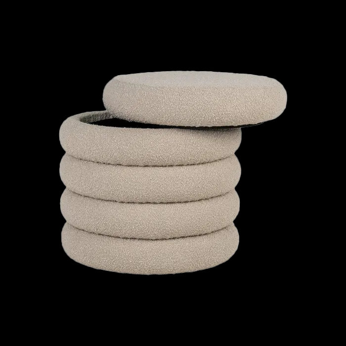Artichok Willemijn poef bouclé beige - met opbergruimte - Ø 44 cm
