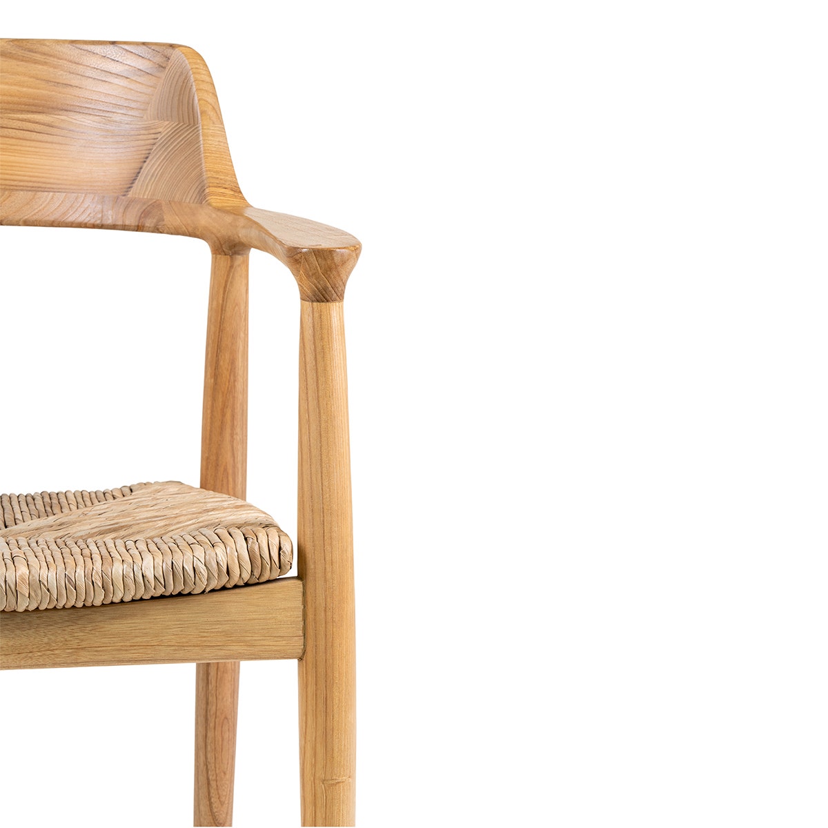 Het frame van de eetkamerstoel is gemaakt van sungai hout en de zitting is gemaakt van rotan. Deze combinatie van materialen en kleuren zorgt ervoor dat de Yorick eetkamerstoelen een ultieme natuurlijke uitstraling heeft. Het rotan zitvlak zorgt voor extra zitcomfort en dankzij de armleuningen kan je ontspannen aan tafel zitten. Deze houten eetkamerstoel past perfect bij een Scandinavisch of Bohemian woonstijl, maar is natuurlijk in elk interieur toe te voegen.