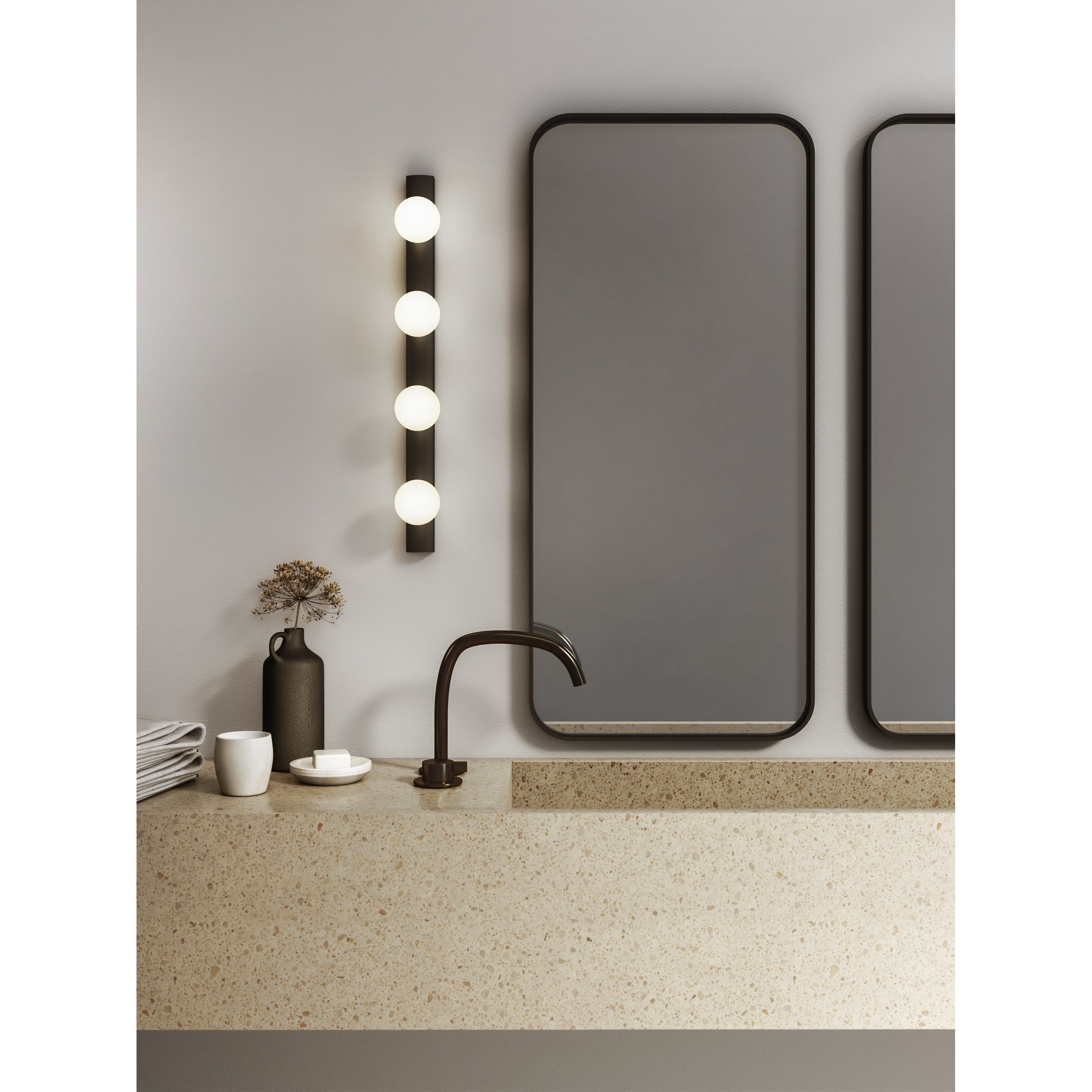 De Cabaret is een sfeervolle badkamerlamp. Kwaliteit, design en functionaliteit komen allen samen in dit moderne LED armatuur met schitterende lichtopbrengst. De Cabaret is leverbaar in de kleur mat zwart.