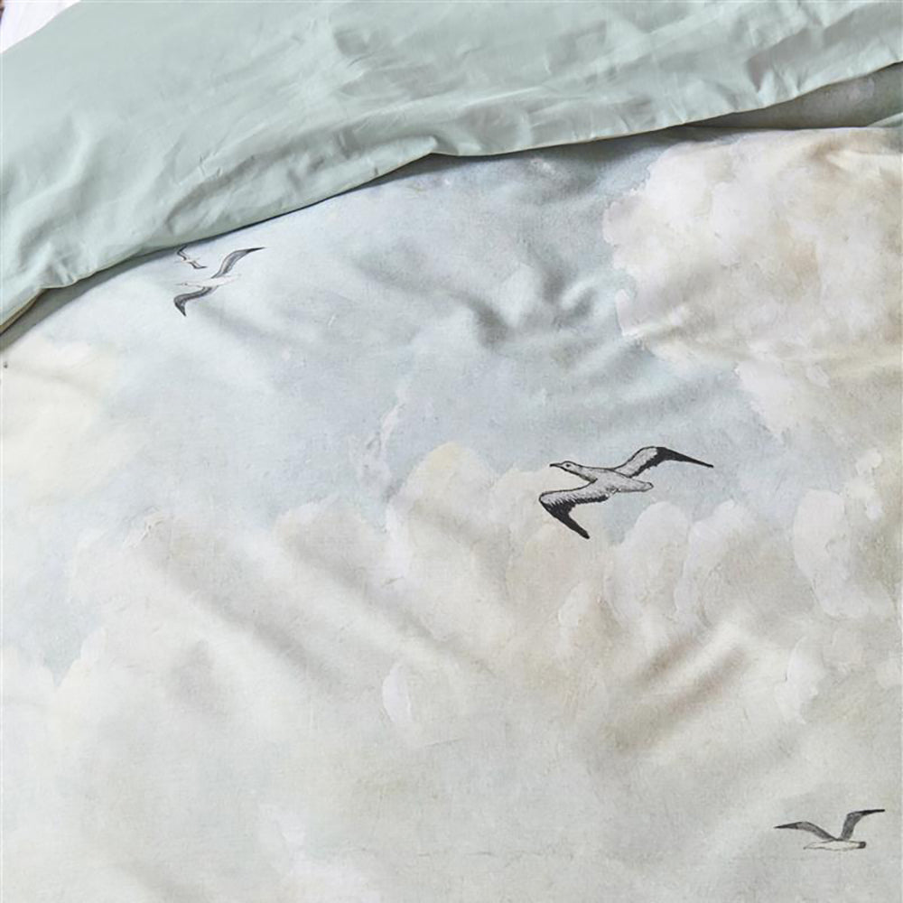 Waarom dekbedovertrek Seaclouds? Een Hollands landschap kenmerkt het dekbedovertrek Seaclouds uit de collectie van At Home by Bedding House. De landschapsprint wat bestaat uit wolken, strand en meeuwen is geschilderd met gebruik van olieverf voor een klassieke touch. De achterzijde heeft een effen zacht blauwe kleur.