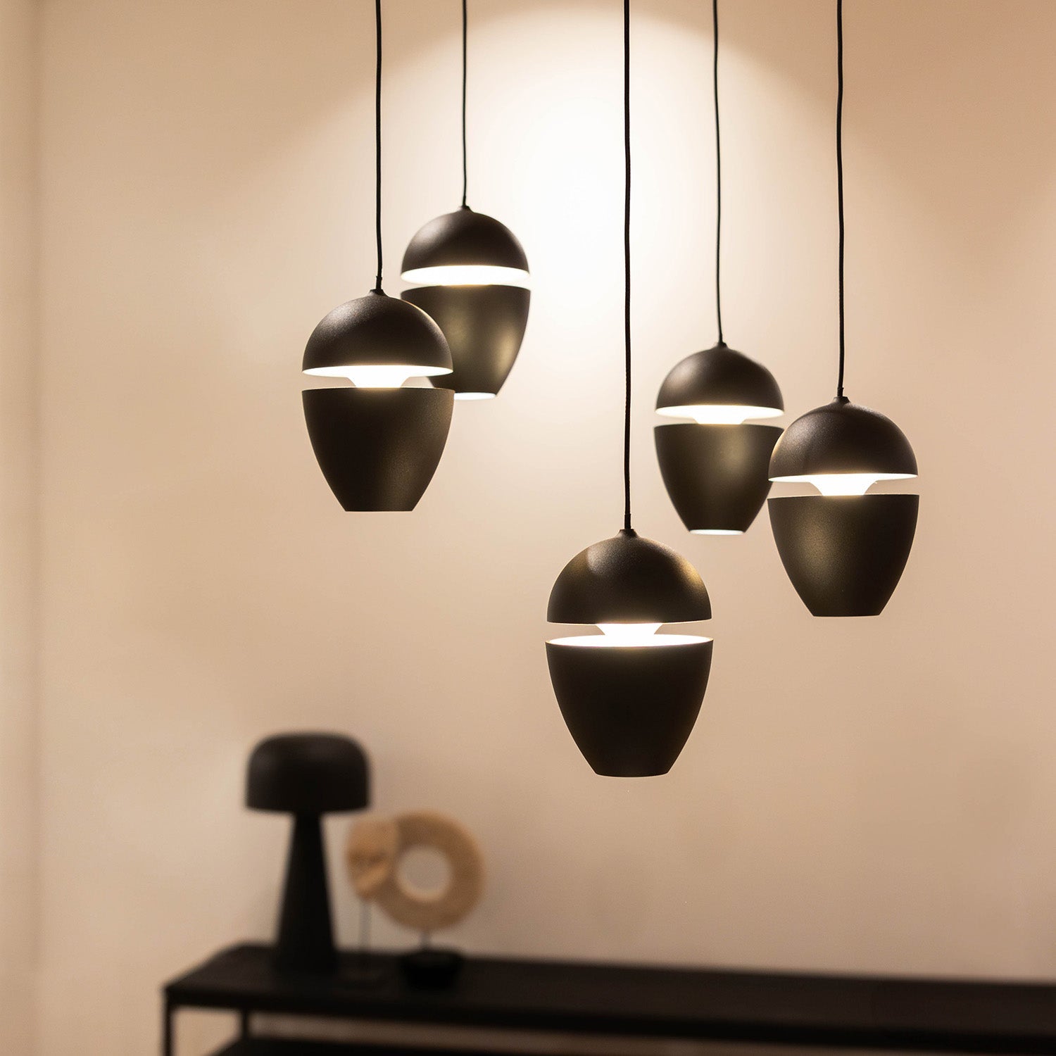 Atmooz Ogima - Hanglamp - Zwart - 5 Lichtpunten - LED - 30x30x160cm