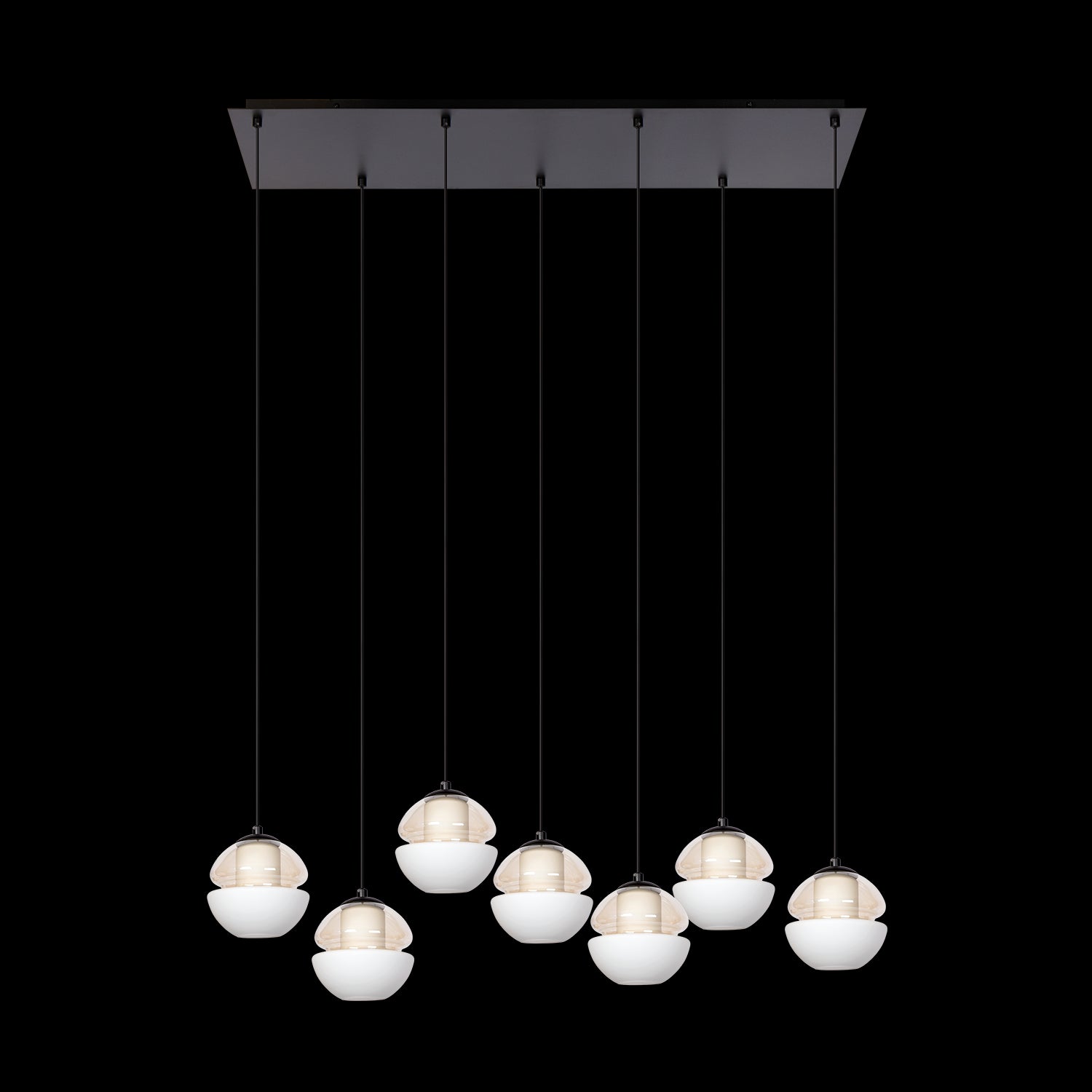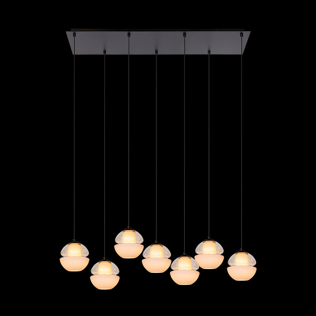 Atmooz Reese 7 - Hanglamp - Rechthoekig - Zwart - Cognac en Opaalglas - 95x32x115cm - Geïntegreerde LED - Dimbaar