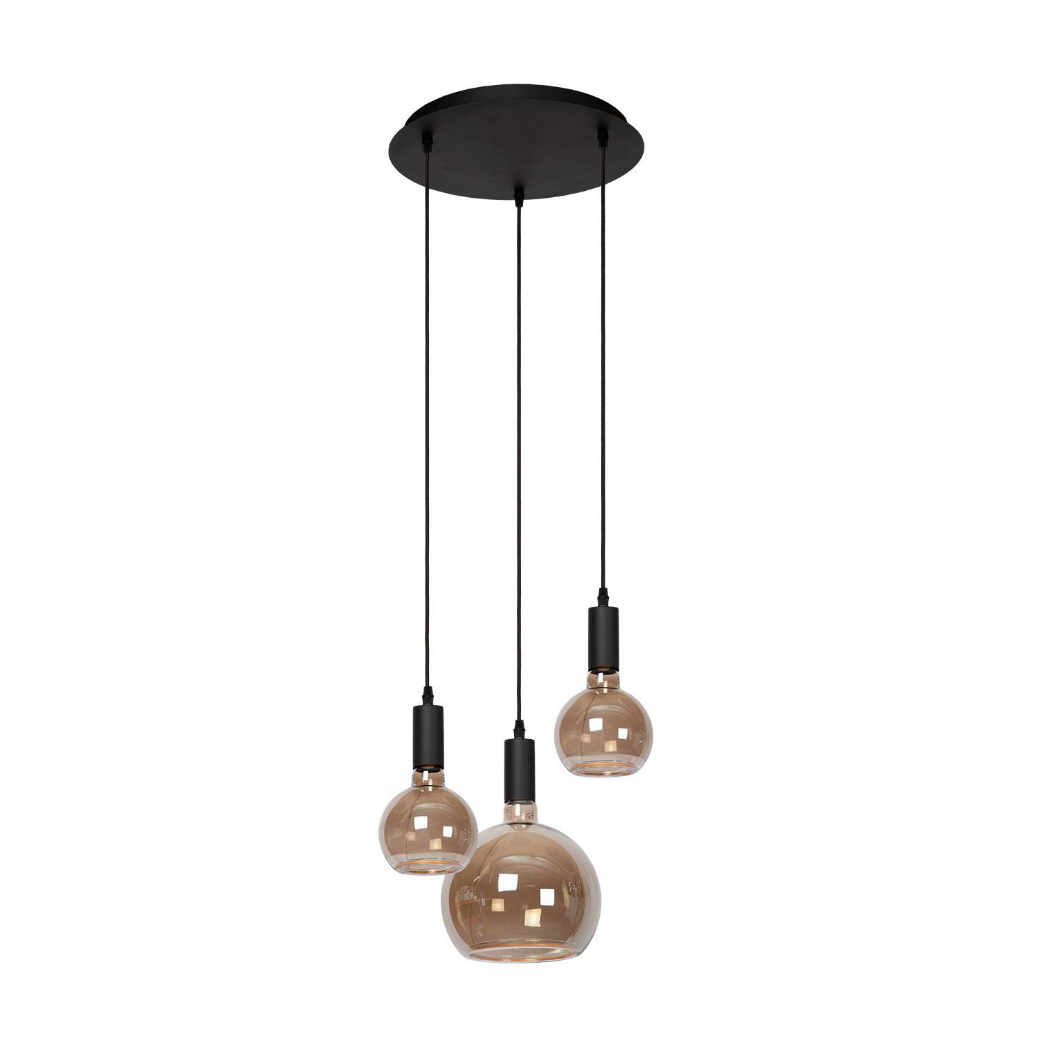 - Mat zwarte plafondplaat met drie stijlvolle pendels.