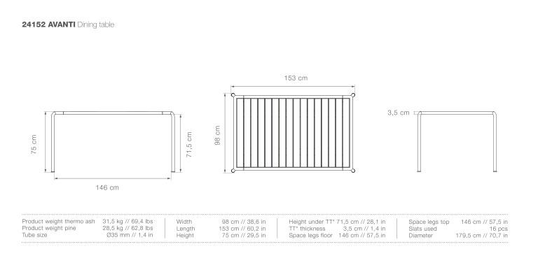 Avanti tuintafel 153x98 Thermo Ash|Black