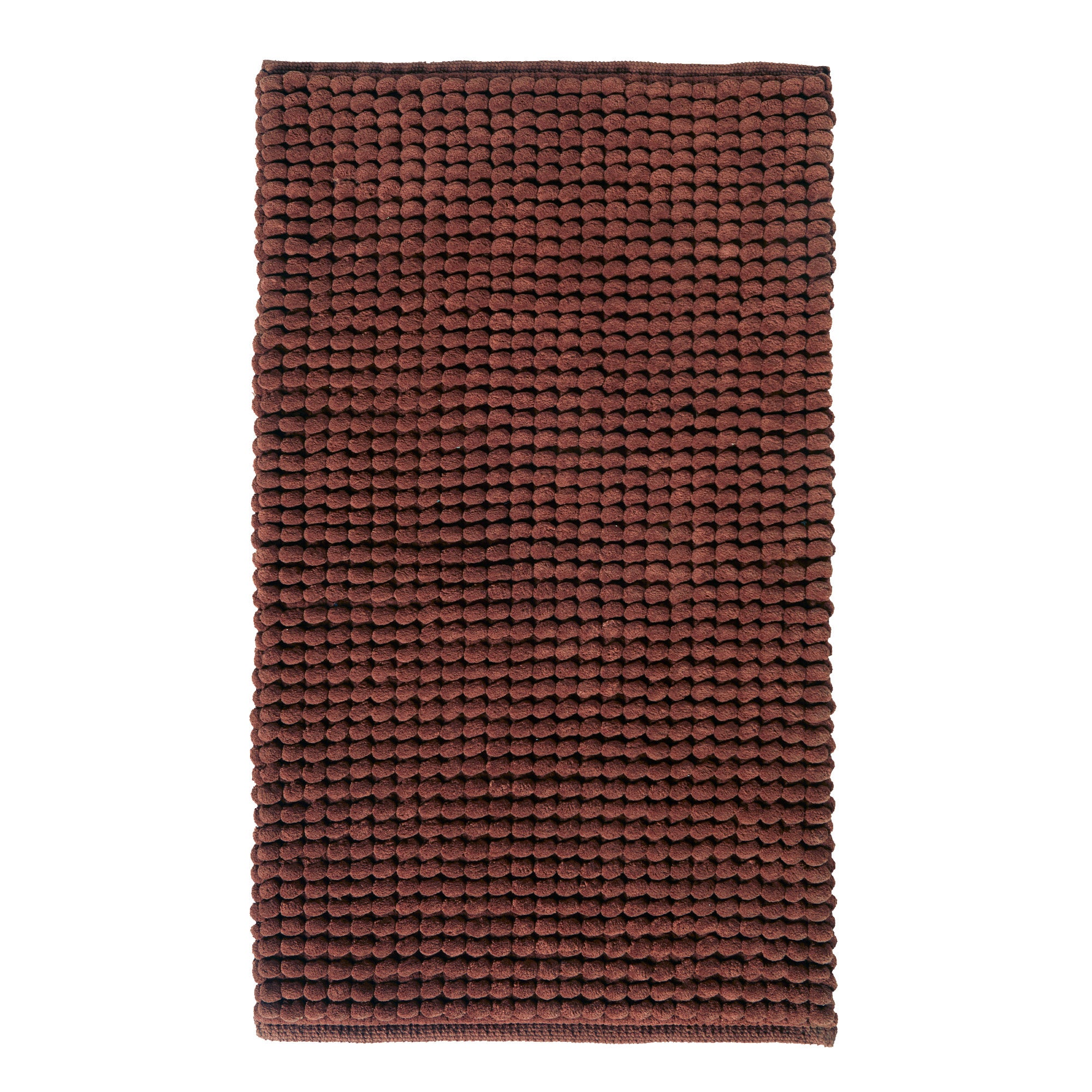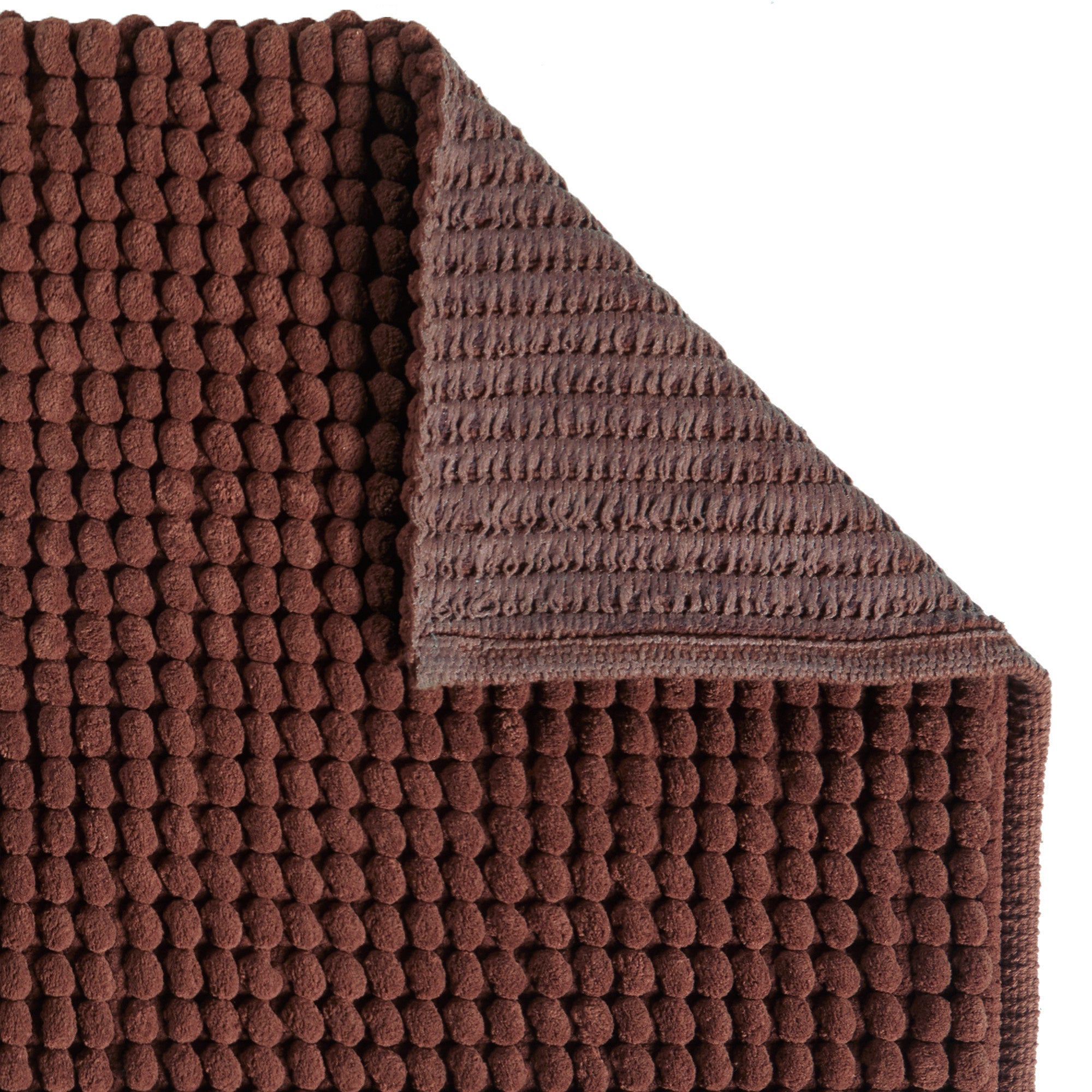 - Een handgemaakte mat met grote lussen, gemaakt van een zachte en sneldrogende stof.