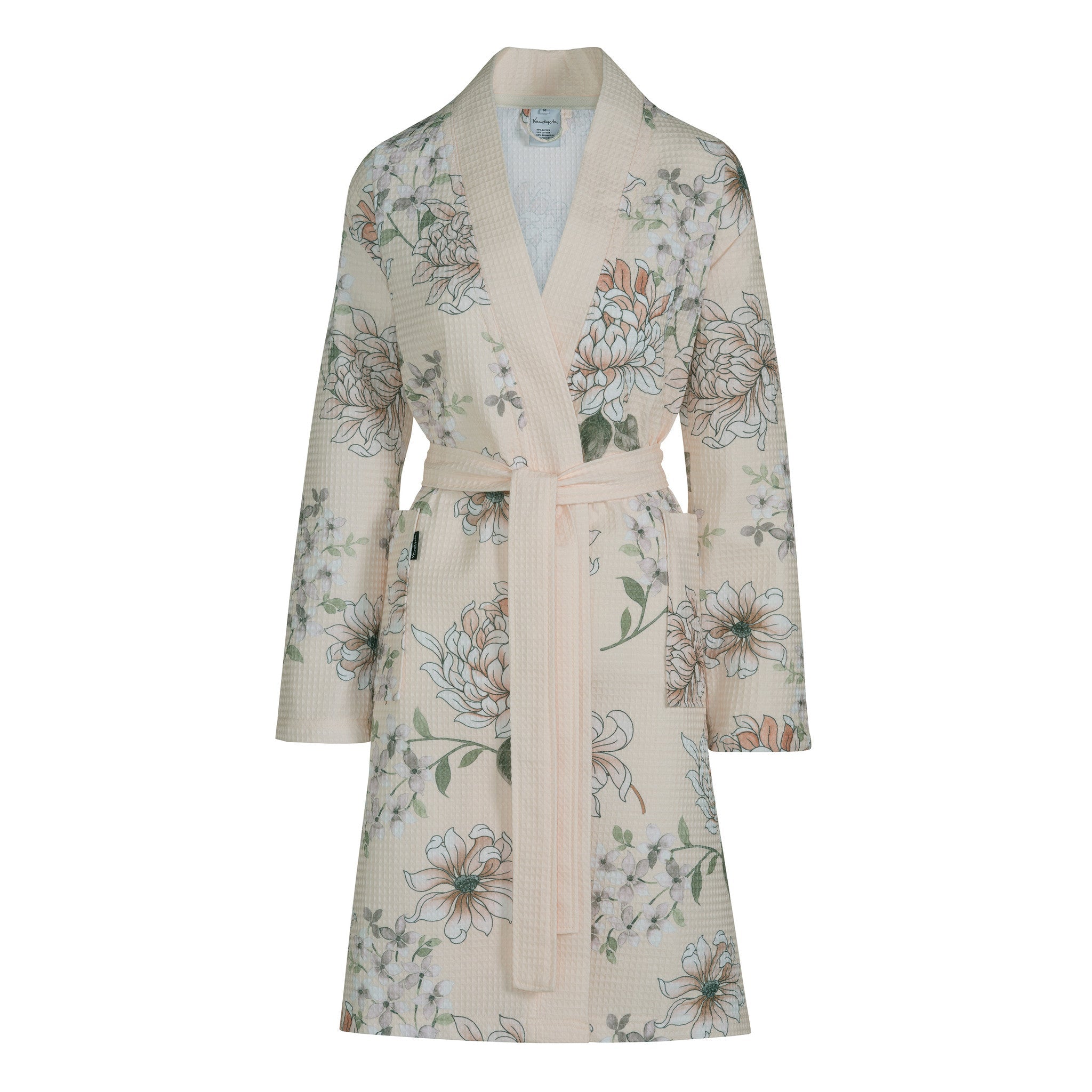 - De badjas heeft een wafelpique, kimonokraag, ceintuur en 2 diepe steekzakken.