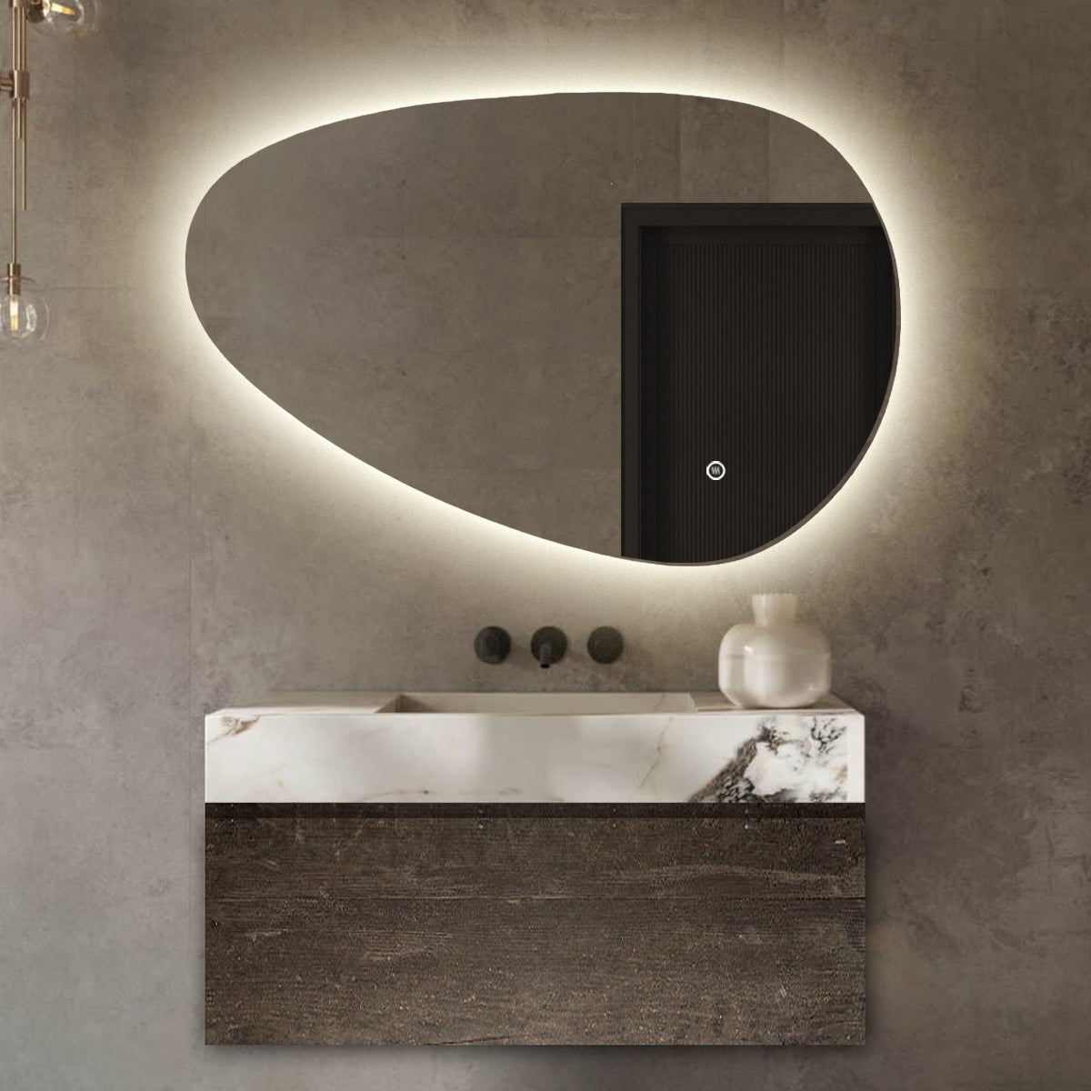 Badkamerspiegel Asymmetrisch - Organisch met Verlichting - 120 x 75 cm