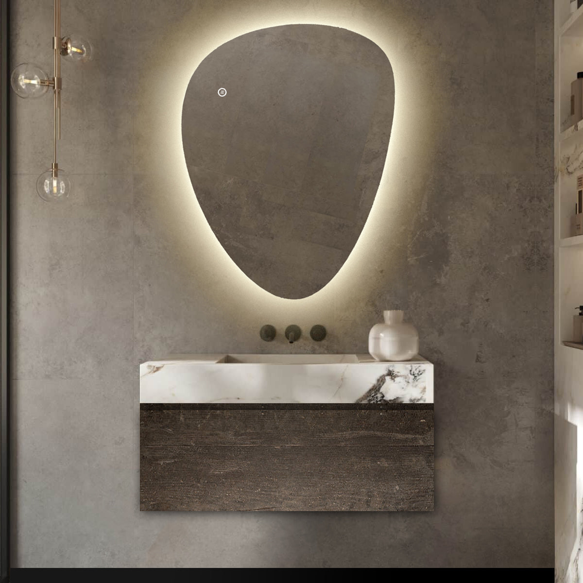 Badkamerspiegel Asymmetrisch - Organisch met Verlichting - 80 x 55 cm