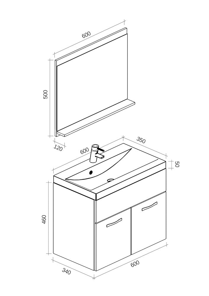 Badplaats Badkamermeubel Montreal Set 02 60 x 35 cm - Eiken met Zwart