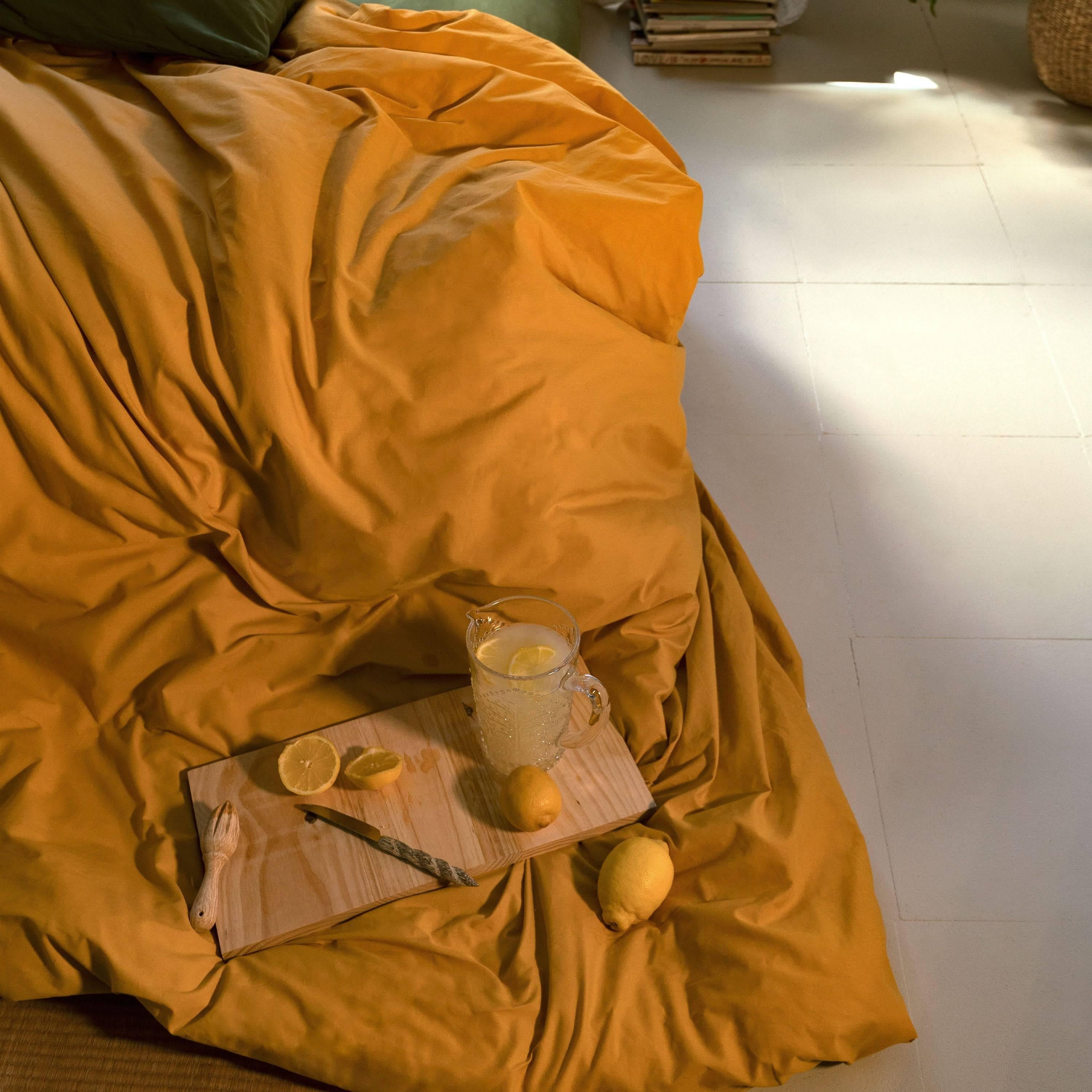 Heb je de uitdrukking ¨Go old OR go home! ¨? Wij zeggen liever "go big and go home" met het Mustard dekbedovertrek van BASIC. De prachtige heldere tinten zorgen voor een zonnige, opgewekte esthetiek in je slaapkamer. Praktisch en gemakkelijk te verwisselen dankzij de plastic drukknopen, biedt dit 150 thread count 100% katoenen product ook een zacht, lichtgewicht en geruststellend gevoel. Kussensloop en hoeslaken niet inbegrepen.