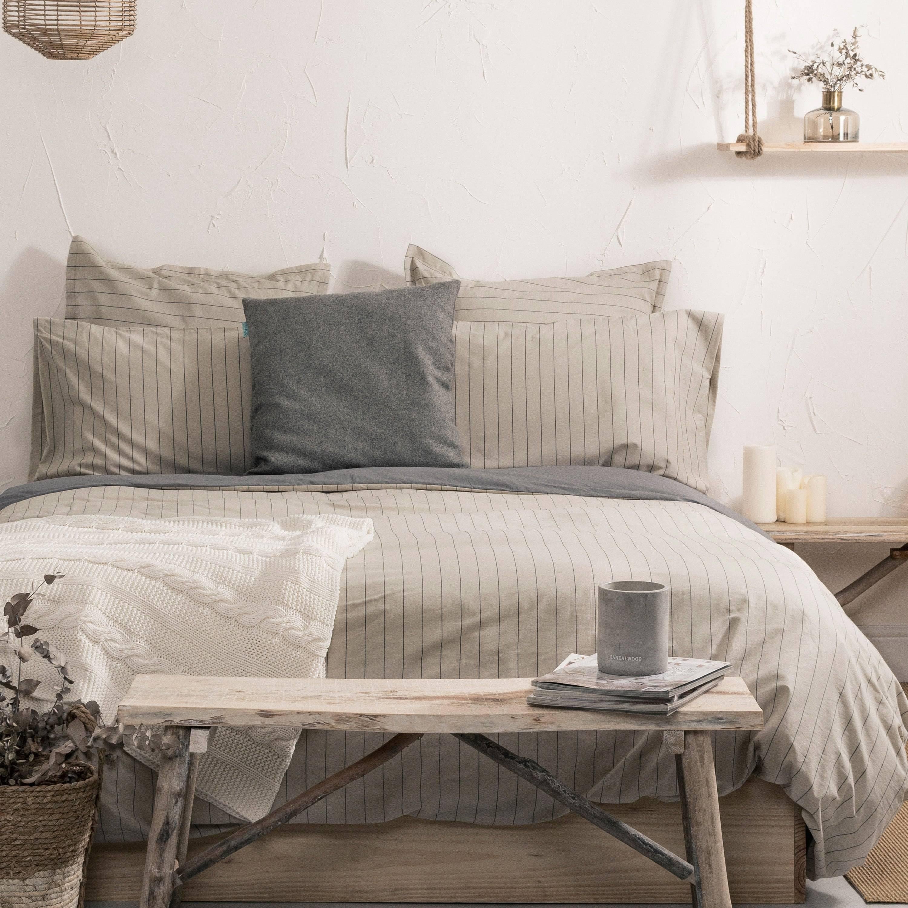 De natuurlijke stof van het Oxford dekbedovertrek uit de Basic collectie creëert een lichte textuur en geeft je slaapkamer een tijdloze en nonchalant elegante uitstraling. De grijze achterkant is ideaal om te combineren met een reeks decoratieve elementen in donkere tinten om een totale look te creëren. Deze lijn bedlinnen van natuurlijke vezels, gemaakt in Spanje van 100% katoen, is de meest gebruikte ter wereld en is koel, licht, zacht en ademend. Bovendien kan het gemakkelijk op wasdag worden verwisseld dankzij de eenvoudige knoopsluiting.