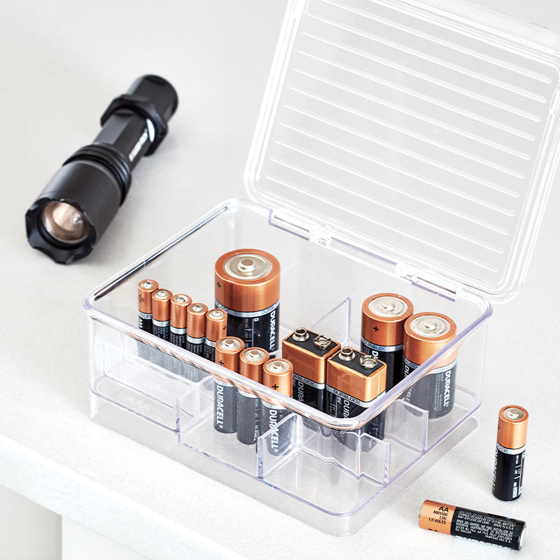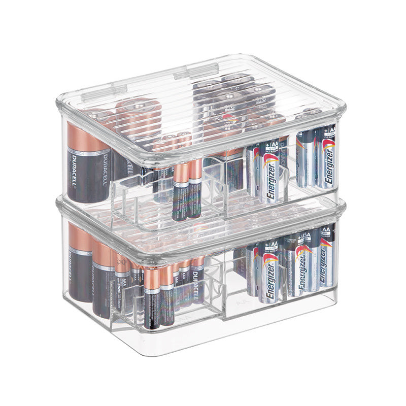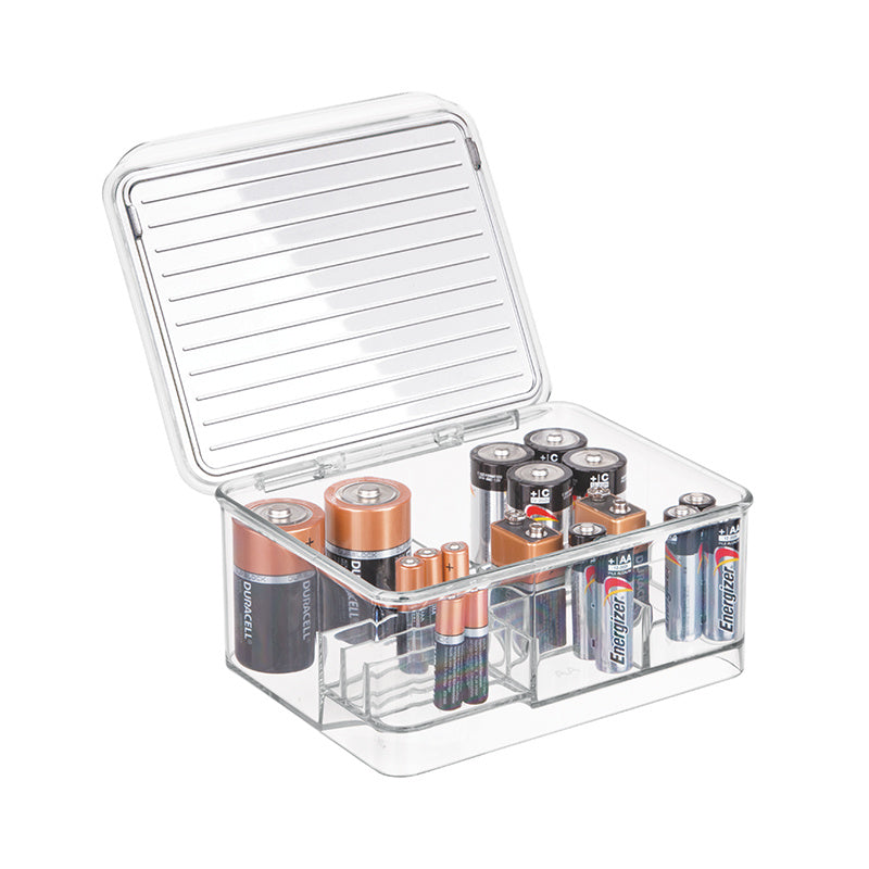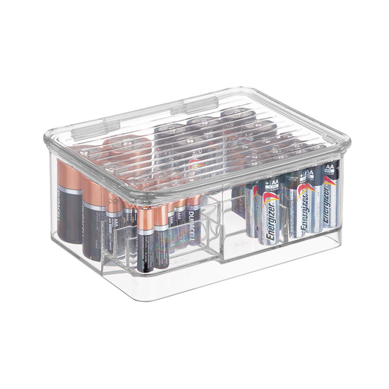 Batterij Organizer met Deksel, 16.9 x 14.1 x 7.5 cm, Stapelbaar, Kunststof, Transparant – iDesign | Linus