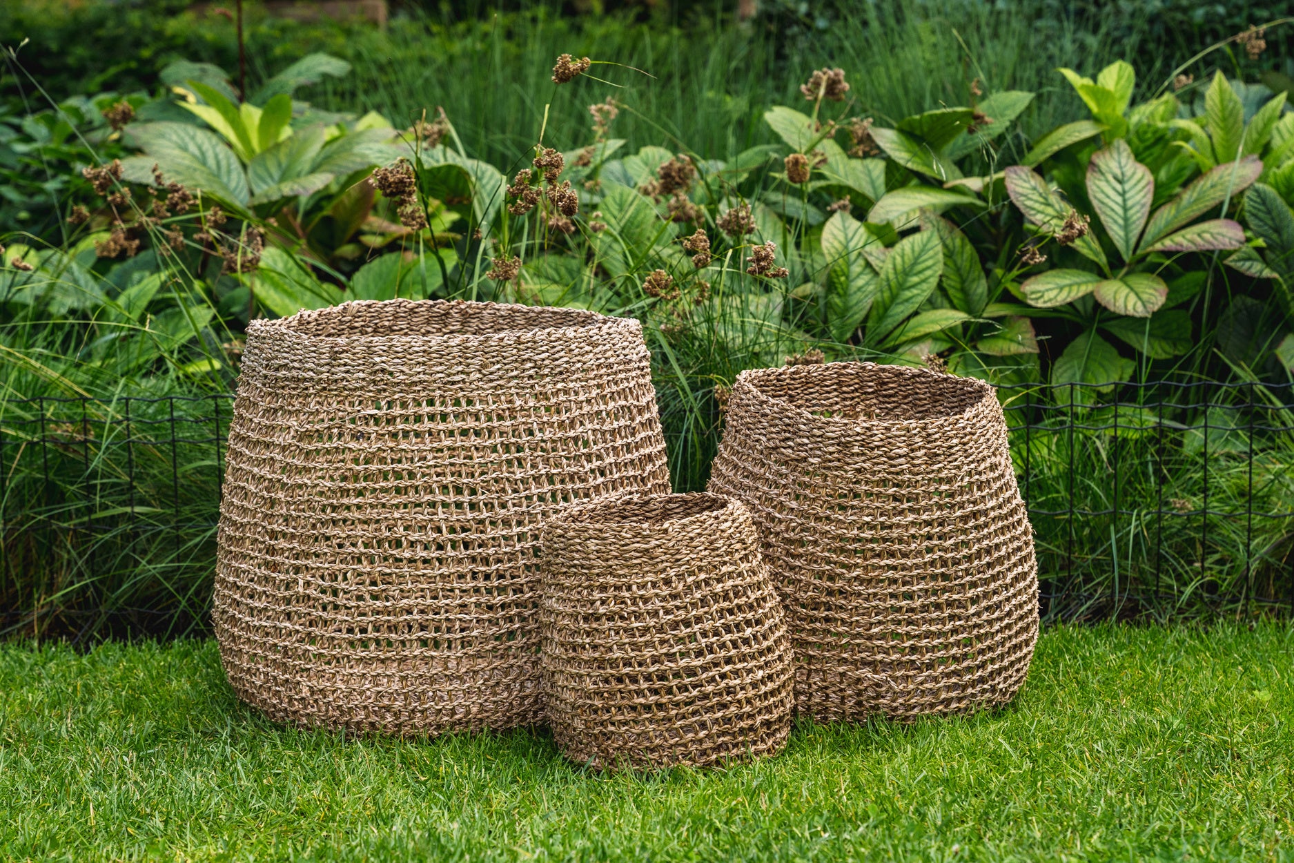 Deze prachtig met zeegras geweven Lang Co Manden in drie maten zijn superhandig om uw was in op te bergen, te gebruiken voor het opbergen van handdoeken in de badkamer of voor het opbergen van speelgoed in een woonruimte of kinderspeelkamer. De stevigheid van deze manden is verbazingwekkend, dankzij de weeftechnieken waar Vietnam beroemd om is. De manden hebben een prachtig doorschijnend patroon. De zachte kaneeltint past bij elke binnen- of buitenruimte.