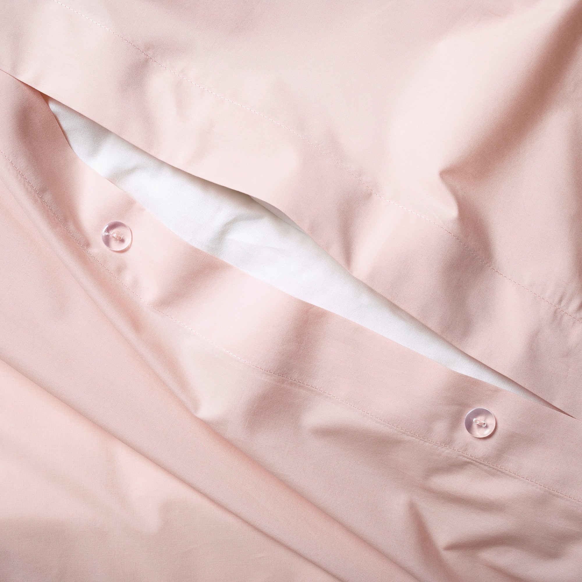 Dit licht roze luxe beddengoed van biologisch percale katoen heeft een draaddichtheid (threadcount) van 300. Percale katoen is heerlijk glad en krakerig crispy. Dekbedovertrek heeft een blinde sluiting met knoopjes zonder instop strook. Een set bestaat uit een dekbedovertrek met 1 of 2 kussenslopen.