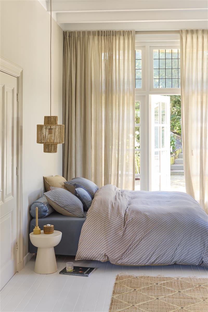 Breng een vleugje luxe in je slaapkamer met het Beddinghouse Alvaro dekbedovertrek in blauw. Het dekbedovertrek heeft een verfijnd grafisch patroon, waarbij een subtiel kleurverloop van zand naar diep blauwgrijs zorgt voor een tijdloze uitstraling. De stof is gemaakt van 70% lyocell en 30% katoensatijn, wat resulteert in een ademend en vochtregulerend comfort voor een verfrissende nachtrust. Het satijnweefsel geeft het dekbedovertrek een zachte glans en een luxe gevoel. Daarnaast is het dekbedovertrek verkrijgbaar in meerdere stijlvolle kleuren, zodat je moeiteloos de perfecte match voor je interieur kunt vinden.Duurzame verpakking - Het dekbedovertrek is mooi en duurzaam verpakt in een stoffen tasje gemaakt van hetzelfde materiaal als het overtrek. Je kunt het tasje eenvoudig hergebruiken.Over Beddinghouse - Beddinghouse is een Nederlands familiebedrijf dat gespecialiseerd is in het ontwerpen van trendy en stijlvol beddengoed. Elk seizoen bieden we een uitgebreide collectie dekbedovertrekken in prachtige kleuren, gemaakt van hoogwaardige materialen.Ons Assortiment - Bij Beddinghouse vind je niet alleen dekbedovertrekken, maar ook bedspreien, moltons, hoeslakens en badtextiel. Onze producten combineren stijl met comfort en duurzaamheid.Waarom Beddinghouse? - Innovatief Design: Altijd volgens de laatste trends.Hoogwaardige Kwaliteit: Duurzame en comfortabele materialen.Groot Assortiment: Voor iedere smaak een passend product.Hoogwaardige kwaliteitHet dekbedovertrek is gemaakt van 70% lyocell en 30% katoensatijn. Lyocell wordt gemaakt van de cellulosevezels van beukenbomen, die kunnen worden gekweekt op grond die niet geschikt is voor landbouw. De beuk heeft minder water, bestrijdingsmiddelen en kunstmest nodig om te groeien en is daarom een duurzamere optie. Daarnaast heeft lyocell antibacteriële eigenschappen, een uitstekend vochtabsorberend vermogen en biedt het optimale ventilatie. De stof zorgt voor een zeer goede temperatuurregeling, waardoor dit dekbedovertrek in de zomer koel is en in de winter warm.Het overtrek heeft over de gehele breedte aan beide zijden een dubbele instopstrook. De totale lengte van het dekbedovertrek is 260 cm. Dit is extra lang waardoor het dekbedovertrek gemakkelijk onder het matras gestopt kan worden en koude voeten worden voorkomen. Het overtrek is geschikt voor dekbedden van 200 cm, 210 cm of 220 cm.